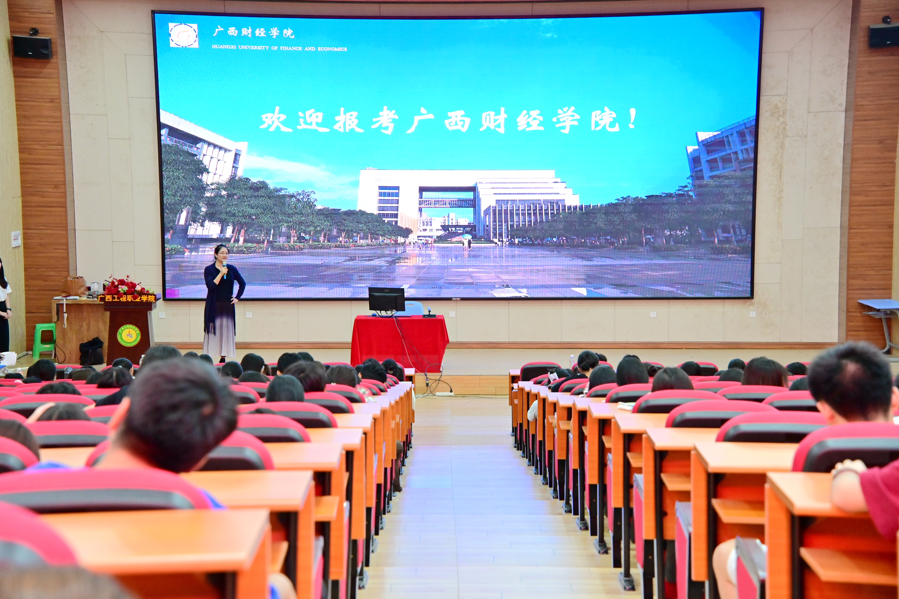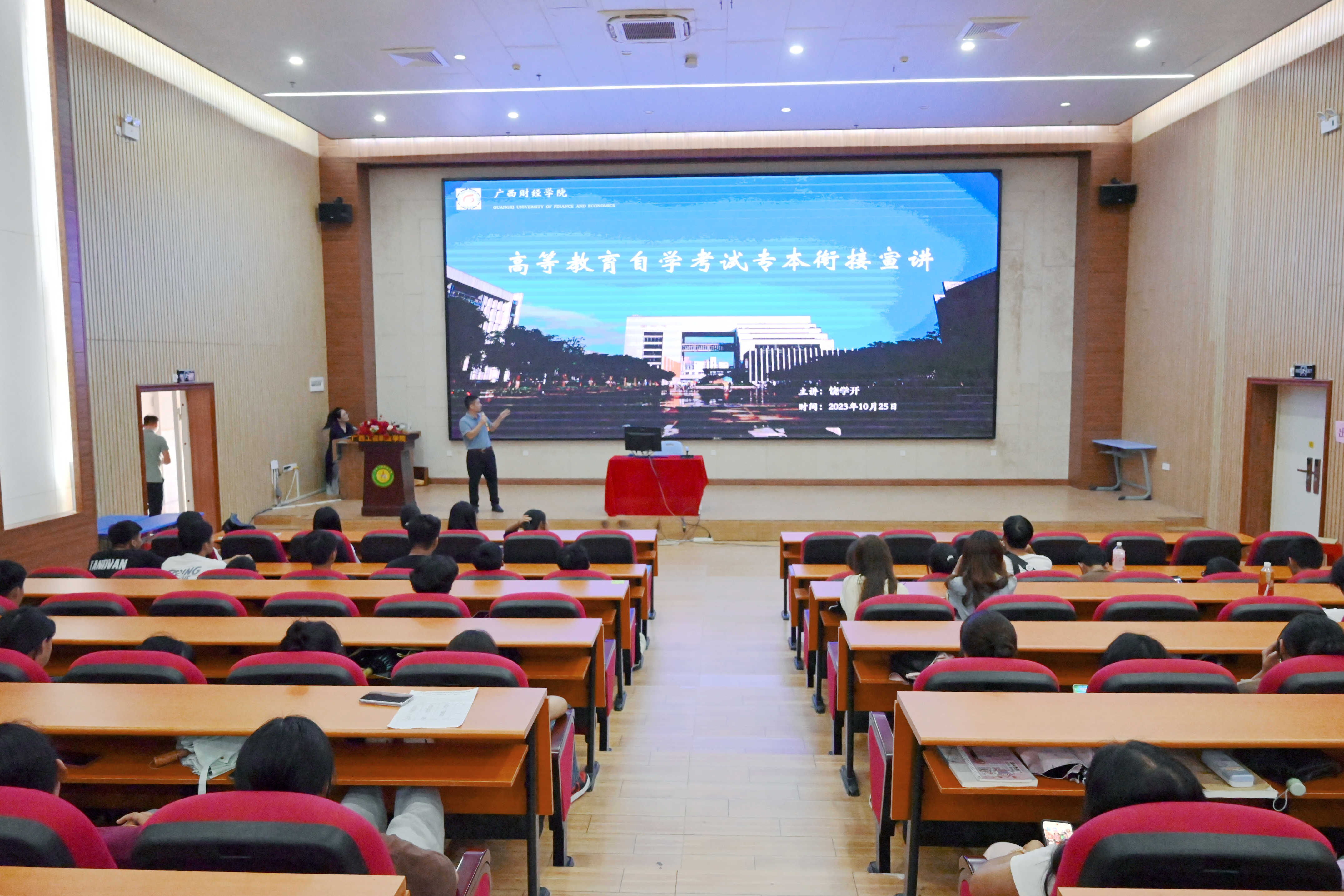 交流會(huì)后,廣西財(cái)經(jīng)學(xué)院繼續(xù)教育學(xué)院饒學(xué)開副院長(zhǎng)、王曉陽(yáng)副主任還分別為學(xué)校各二級(jí)學(xué)院學(xué)生代表進(jìn)行了專本銜接報(bào)讀宣講。
