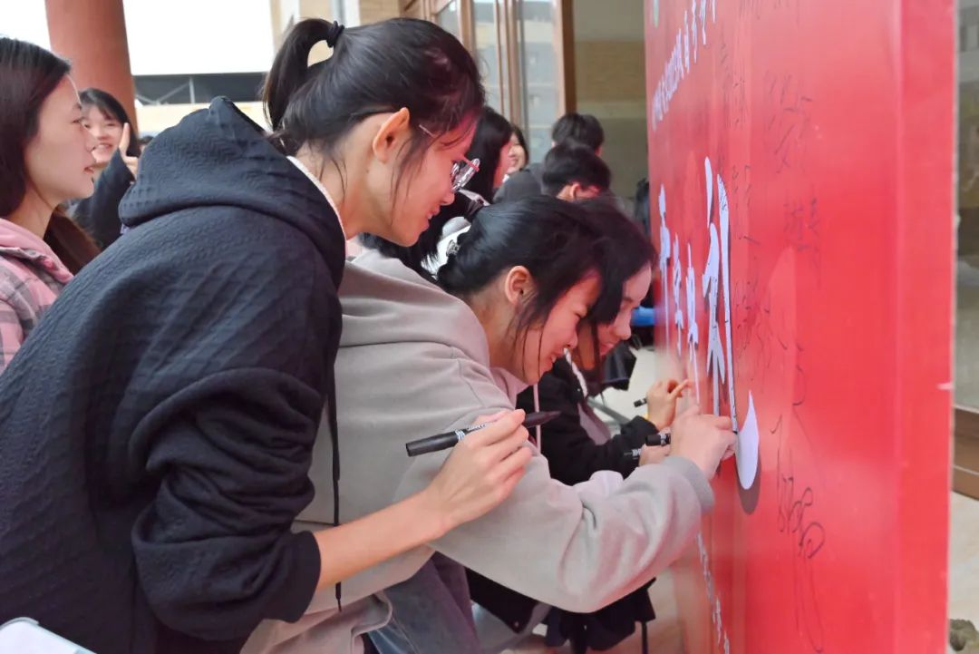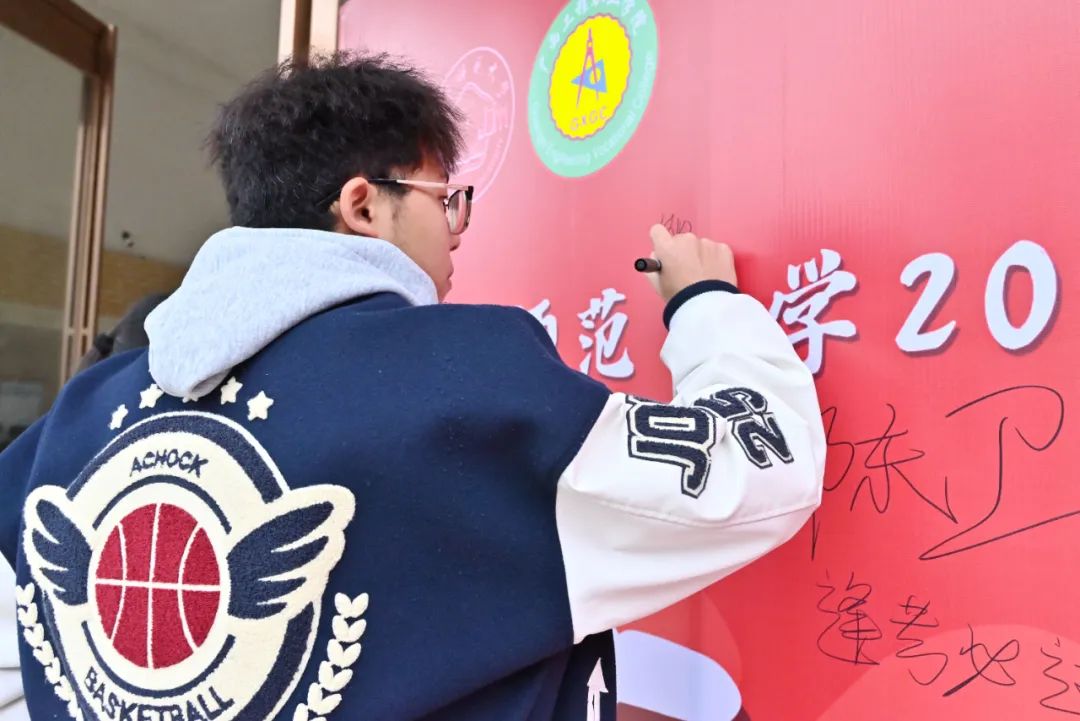 開學(xué)典禮舉行前,學(xué)生在簽名墻鄭重地簽下自己的名字,表達(dá)自己在新的起點(diǎn)上,踔厲奮發(fā),追夢(mèng)前行。