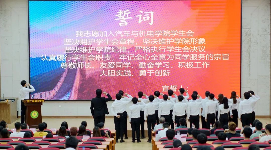 會(huì)議第五項(xiàng),由第14屆新任學(xué)生會(huì)主席符正豪發(fā)言并帶領(lǐng)新任干部進(jìn)行宣誓