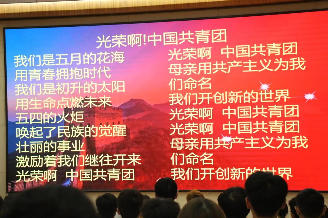 會(huì)議第一項(xiàng),全體起立奏唱共青團(tuán)團(tuán)歌