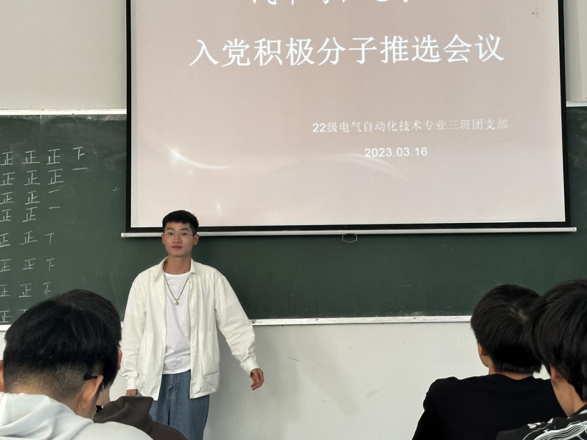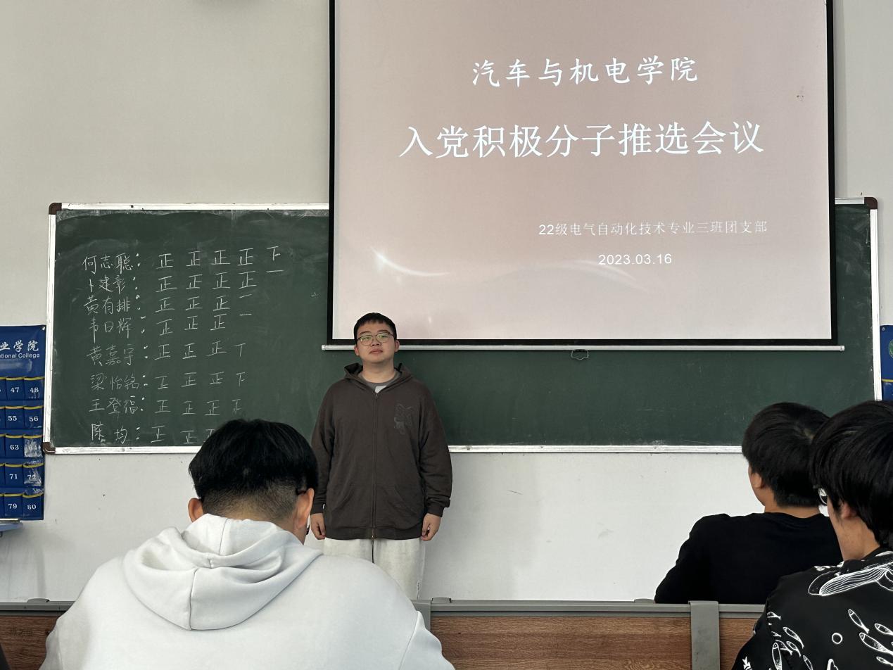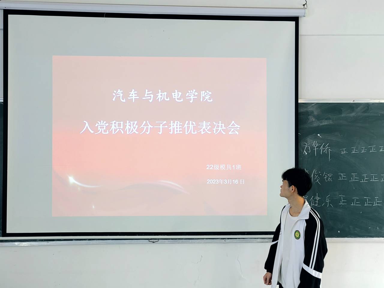 22級模具1班方華僑同學(xué)在推選會議上講解了入黨積極分子推優(yōu)的目的及意義,并宣讀《汽車與機電學(xué)院入黨積極分子推優(yōu)制度》。
