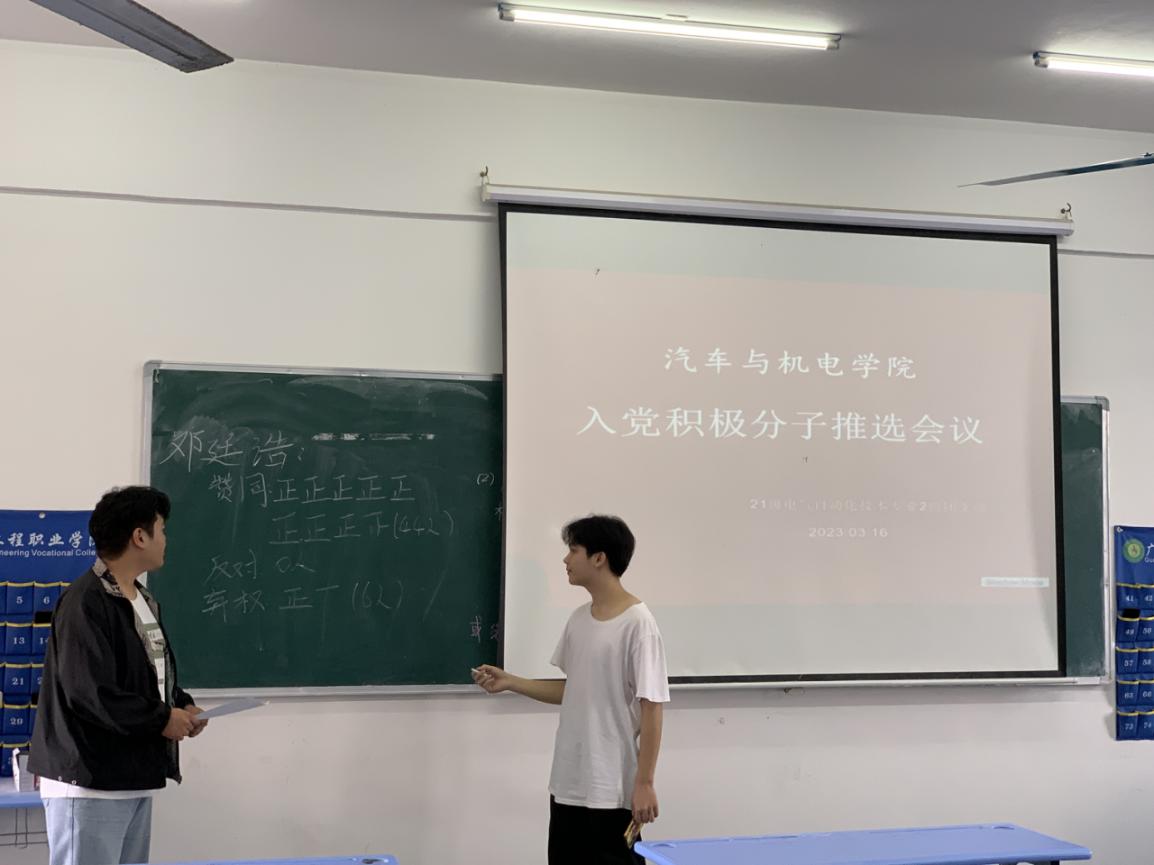 21級機器人1班團支部進(jìn)行統(tǒng)票 至此,2023年春學(xué)期汽車與機電學(xué)院入黨積極分子推優(yōu)大會圓滿結(jié)束。本次入黨積極分子推優(yōu)大會的召開,不僅堅定了青年團員積極向黨組織靠攏的決心,也為黨輸送了優(yōu)秀的新鮮血液,培養(yǎng)后繼之才。相信此次通過入黨積極分子推優(yōu)的優(yōu)秀團員今后會更加理解中國共產(chǎn)黨在面對苦難時表現(xiàn)出的堅韌品質(zhì),不斷追求、進(jìn)取,迎難而上,爭取早日成為一名共產(chǎn)黨員。