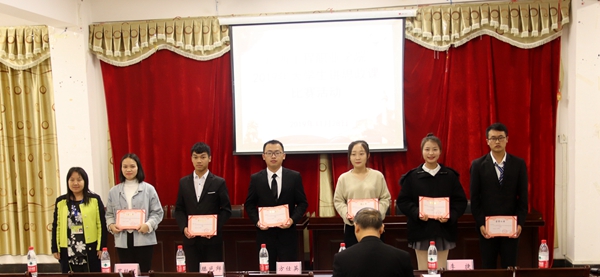 黨委副書記滕色鮮為獲得二等獎(jiǎng)的參賽隊(duì)頒發(fā)榮譽(yù)證書