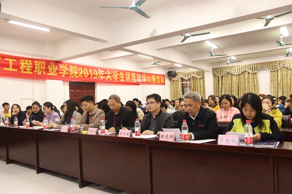11月28日晚,由思政課教學(xué)部舉辦的廣西工程職業(yè)學(xué)院2019年“大學(xué)生講思政課” 公開(kāi)課比賽在學(xué)校第一會(huì)議室如期舉行。學(xué)校黨委書記方仕英,學(xué)校黨委副書記、副校長(zhǎng)滕色鮮副教授,學(xué)校副校長(zhǎng)羅艷妮、校長(zhǎng)助理胡細(xì)木副教授及學(xué)校教學(xué)督導(dǎo)室李捷老師出席活動(dòng)現(xiàn)場(chǎng)并擔(dān)任比賽的評(píng)委。學(xué)校全體思政課教師及近百名學(xué)生前來(lái)觀看。