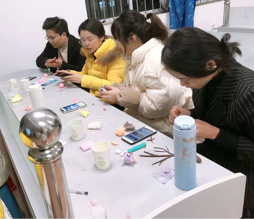 參加學習的老師們紛紛動手制作,并踴躍發(fā)表自己的看法,提出自己在制作教具過程中的困惑。