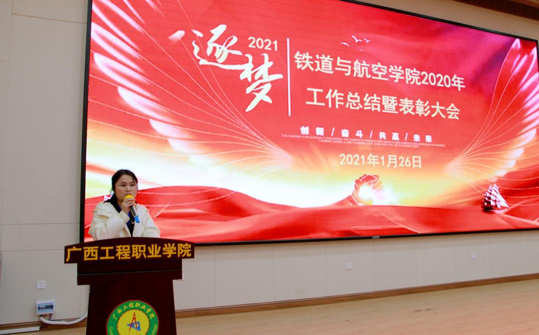 會上,覃清香副院長對鐵道與航空學(xué)院2020年總體工作進(jìn)行總結(jié),她充分肯定了學(xué)院全體專兼職教師、輔導(dǎo)員、行政人員在教育教學(xué)、學(xué)生管理、黨團(tuán)建設(shè)等方面做出的努力和成績,同時也指出了不足之處。覃清香副院長希望全體鐵道與航空學(xué)院教師在新的學(xué)年要履好職責(zé)、勇?lián)耸姑?,繼續(xù)努力,共同推進(jìn)學(xué)院的教育事業(yè)取得新發(fā)展。