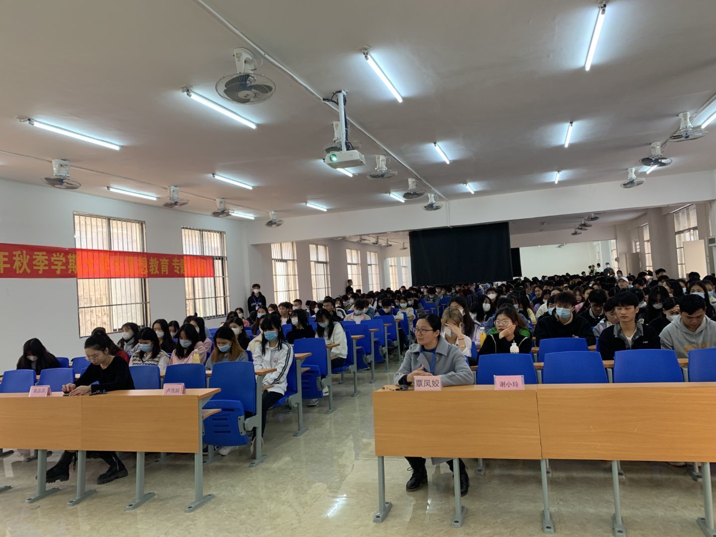 學生科科長謝小玲作“明制度,強信念,做合格大學生”專題培訓會