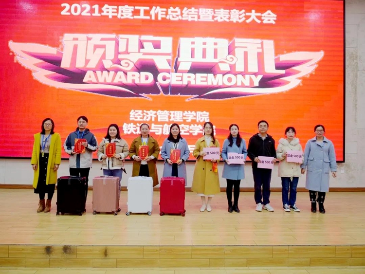 會(huì)上,彭高彬副校長(zhǎng)宣讀經(jīng)濟(jì)管理學(xué)院、鐵道與航空學(xué)院2021年優(yōu)秀教師、優(yōu)秀輔導(dǎo)員表彰名單,并希望獲得表彰的先進(jìn)個(gè)人謙虛謹(jǐn)慎、戒驕戒躁,爭(zhēng)取取得更優(yōu)異的成績(jī);號(hào)召學(xué)院教師以獲獎(jiǎng)的個(gè)人為榜樣,奮勇?tīng)?zhēng)先,扎實(shí)工作,推動(dòng)學(xué)院的新發(fā)展和實(shí)現(xiàn)學(xué)校的宏偉藍(lán)圖而努力奮斗。