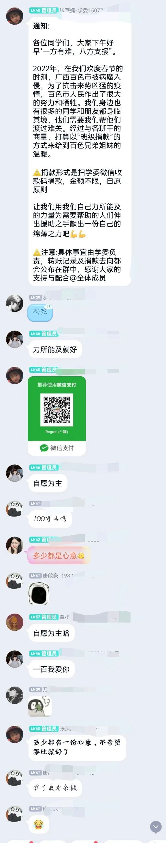 為助力百色市疫情防控,我院學(xué)子自發(fā)發(fā)起號召,積極為抗擊新冠疫情捐款獻(xiàn)愛心。