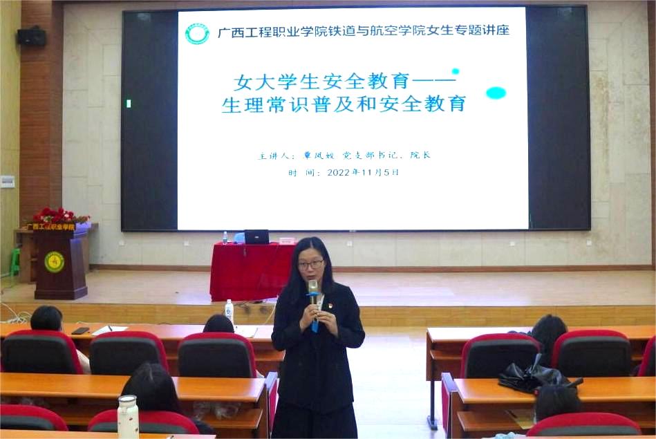 學院黨支部書記、院長覃鳳姣作題為《女生衛(wèi)生安全教育》的專題培訓
