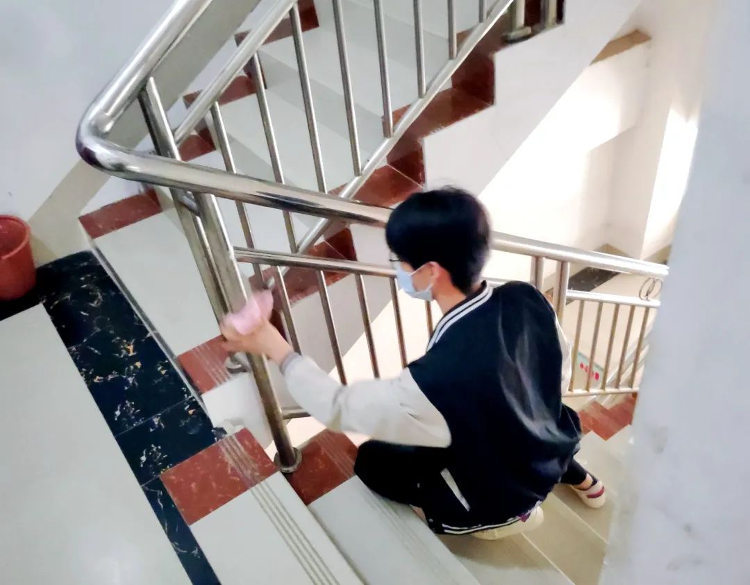 志愿者們打掃衛(wèi)生整理內(nèi)務(wù)