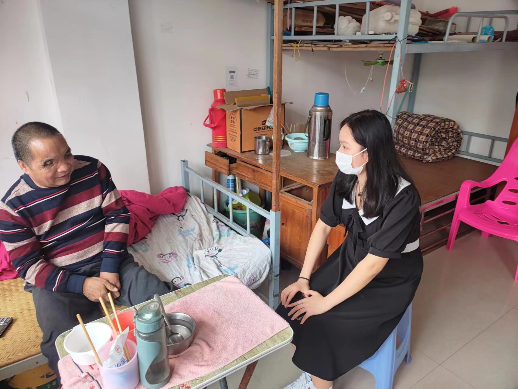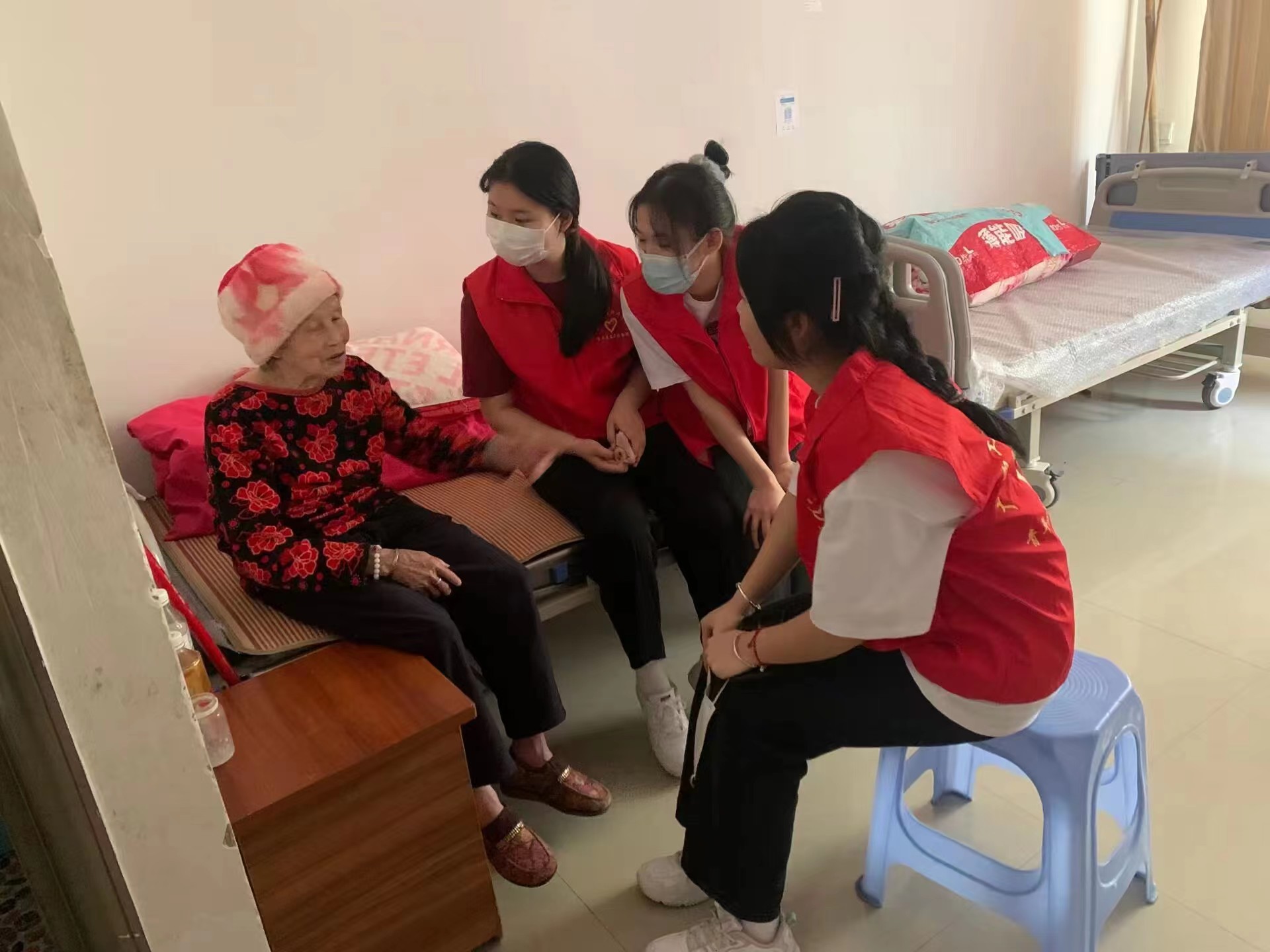 志愿者與老人談心話家常