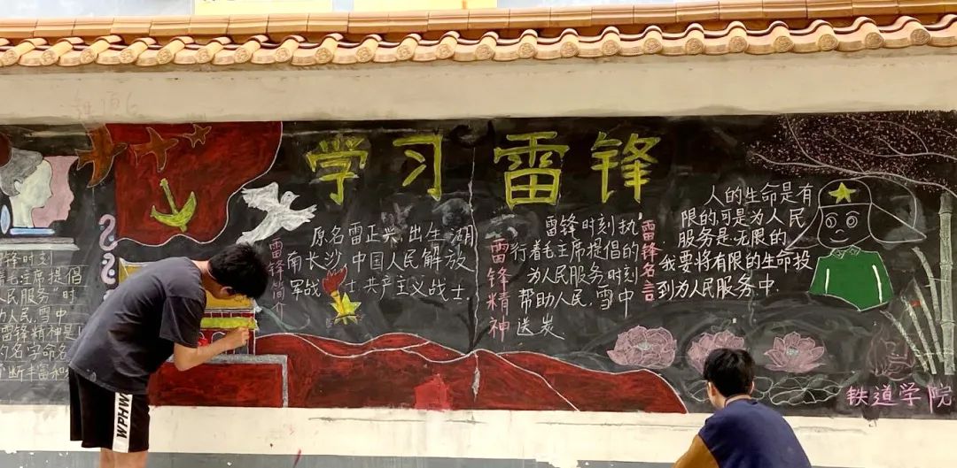 雷鋒精神駐心中,妙筆生花頌美德。鐵道與航空學(xué)院開展以“傳承雷鋒精神、爭做時(shí)代新人”為主題的黑板報(bào)評(píng)比活動(dòng)。同學(xué)們用自己手中的粉筆,描繪出心目中的雷鋒形象,筆尖傾瀉著向雷鋒同志學(xué)習(xí)的心聲,雷鋒精神根植于同學(xué)們的內(nèi)心,用心傳遞對(duì)英雄的敬意。