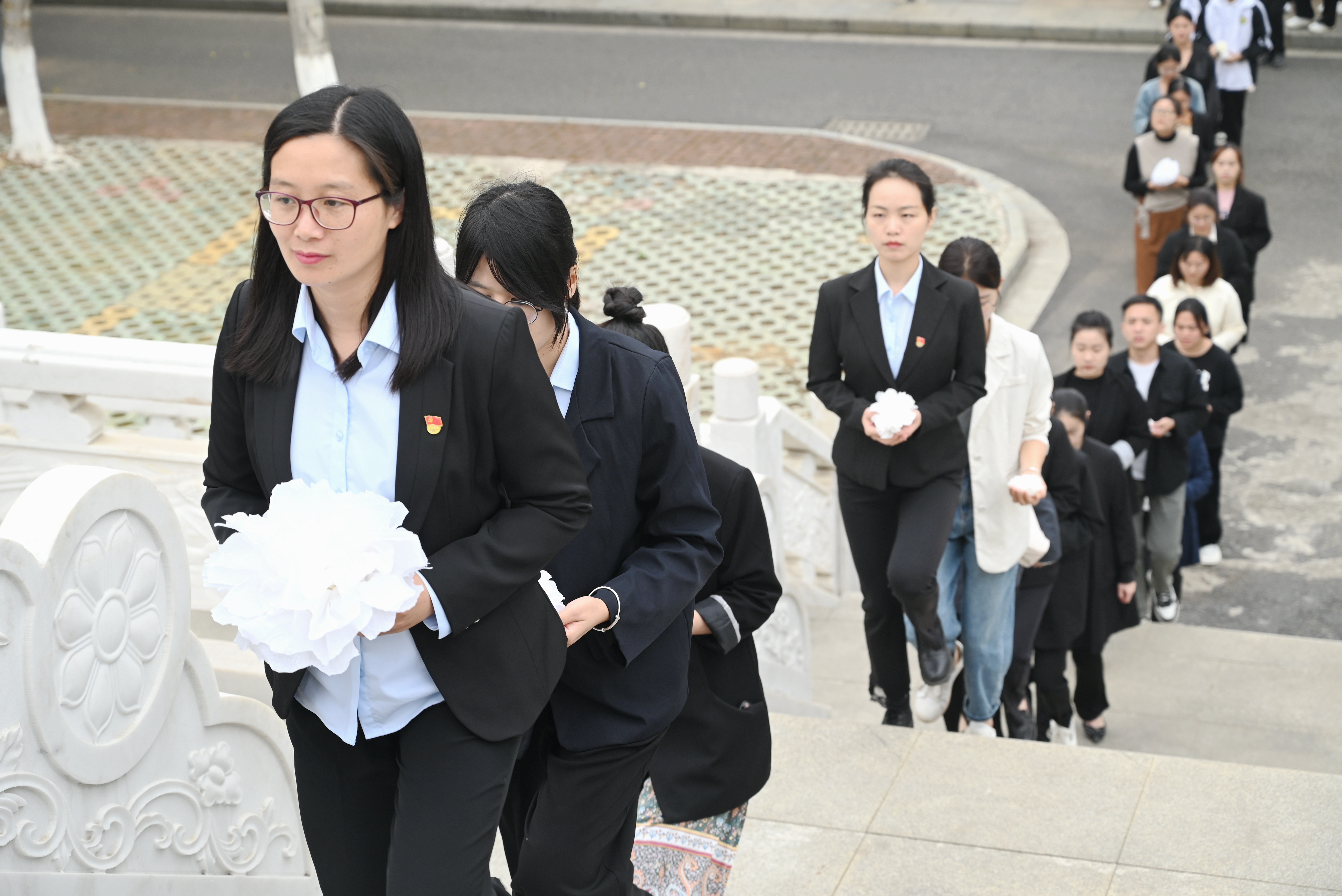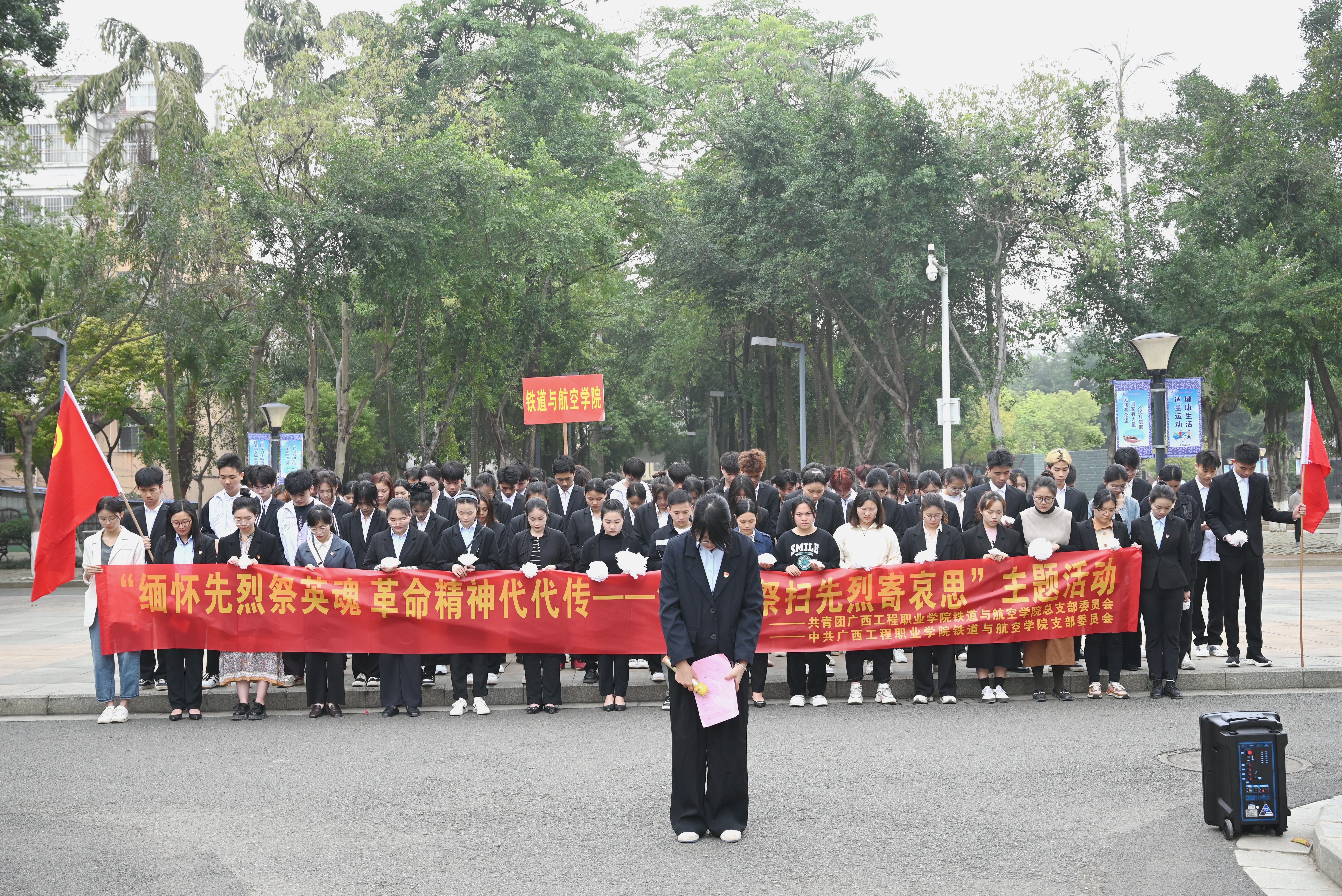 緊接著,鐵道與航空學院黨支部副書記宋蓉同志詳細介紹平果市烈士陵園的歷史以及烈士感人事跡。鐵道與航空學院支部書記、院長覃鳳姣帶領全體人員重溫入黨誓詞,并獻上親手制作的小白花。