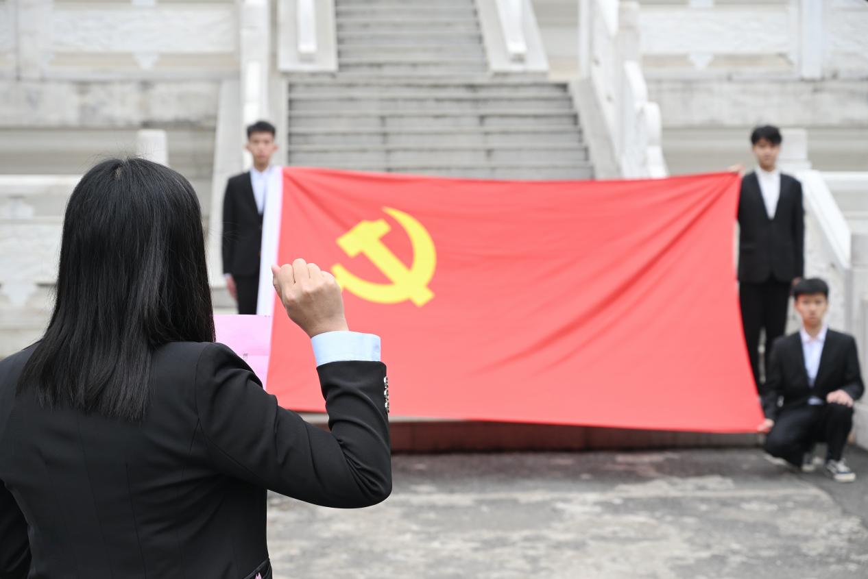 鐵道與航空學院黨支部書記、院長覃鳳姣同志帶領大家重溫入黨誓詞