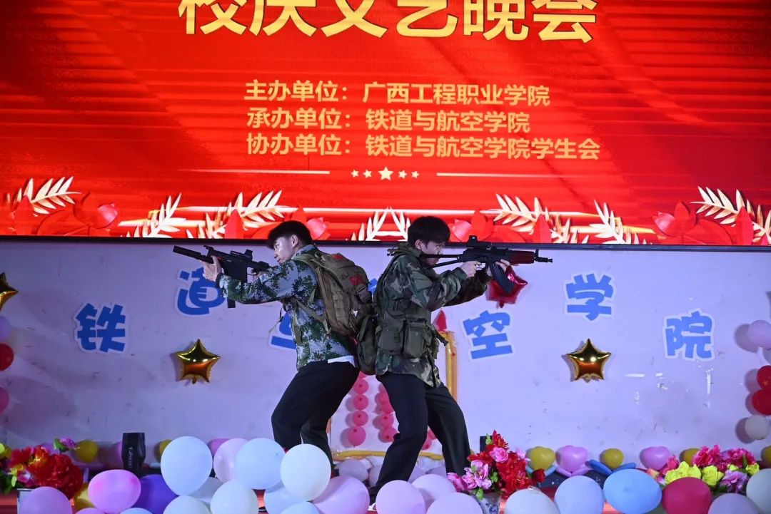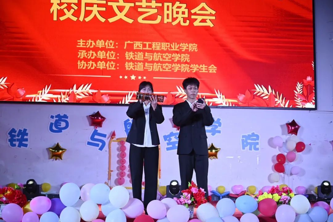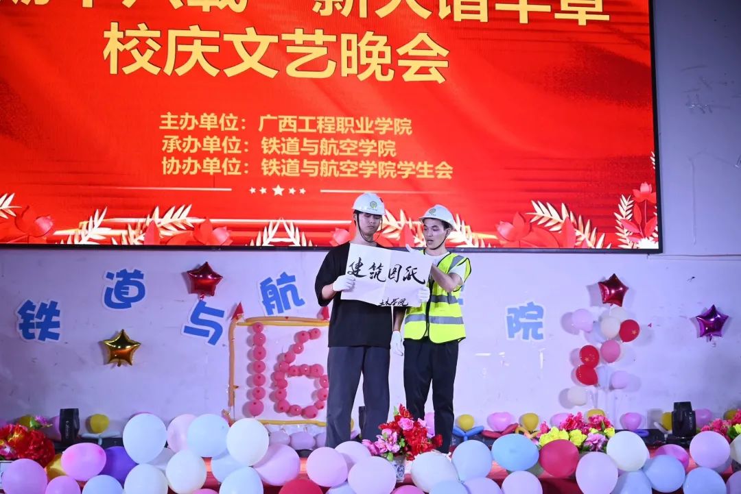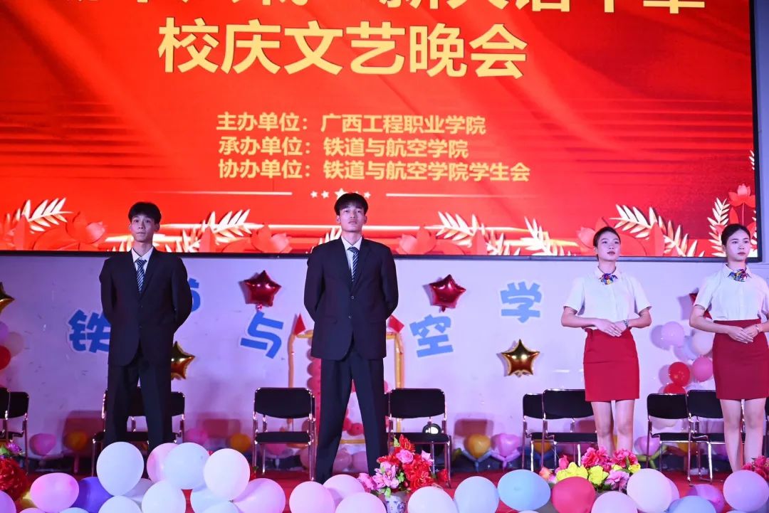 整場(chǎng)晚會(huì)節(jié)目精彩紛呈,高昂的旋律,真摯的情感,生動(dòng)再現(xiàn)了學(xué)院自強(qiáng)不息、開拓創(chuàng)新的奮斗姿態(tài),展示了學(xué)院師生共創(chuàng)美好明天的強(qiáng)烈愿望,以及對(duì)廣工院崇高的敬意和無限的熱愛。鐵道與航空學(xué)院祝愿廣西工程職業(yè)學(xué)院在新的征程,擔(dān)民族復(fù)興使命,勇乘時(shí)代巨瀾,再開宏圖新卷,再譜新華章!