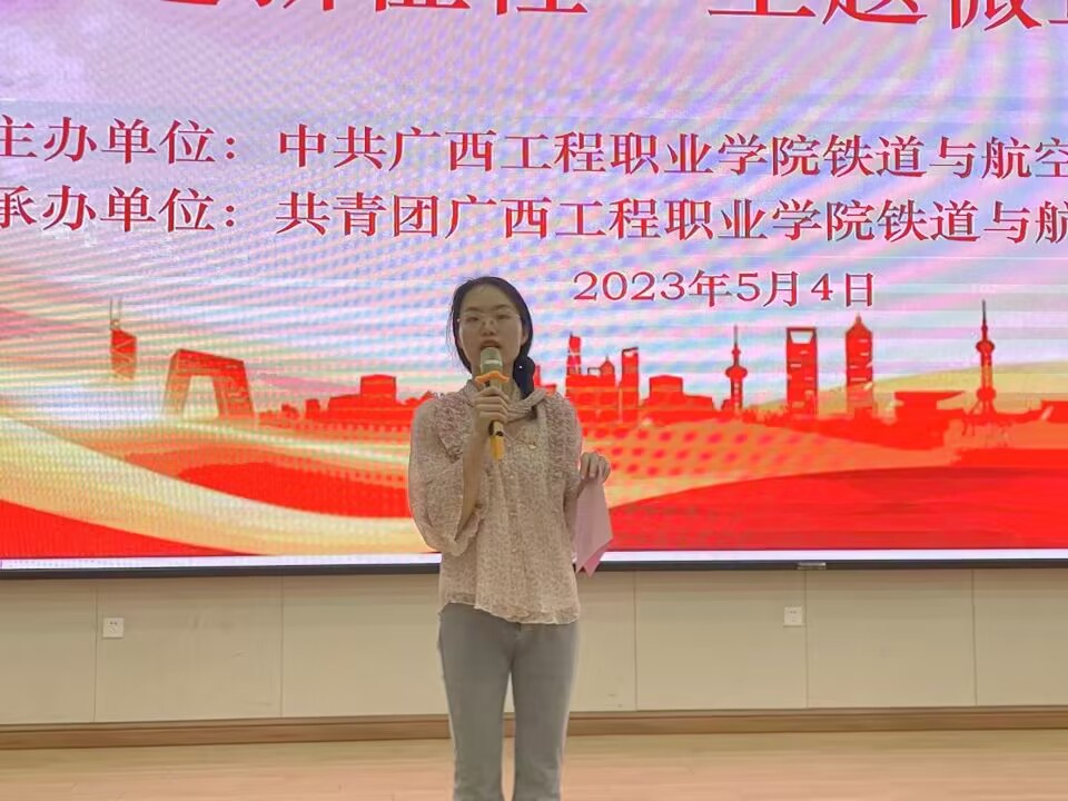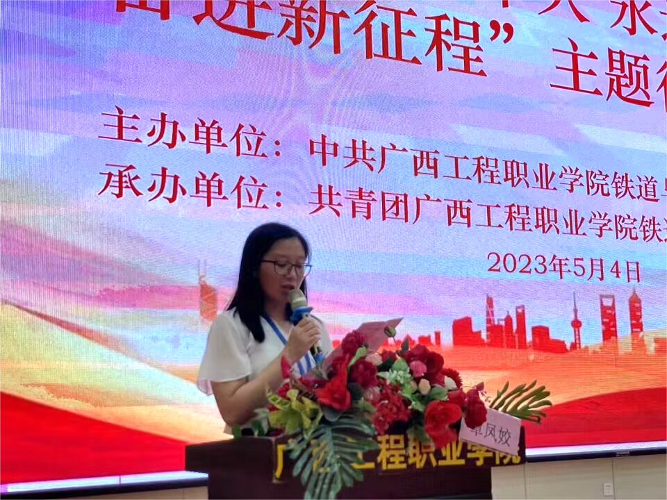 鐵道與航空學(xué)院黨支部書記、院長覃鳳姣致辭,她指出,作為當(dāng)代大學(xué)生,我們要積極學(xué)習(xí)黨的二十大精神,做學(xué)習(xí)黨的二大的先行者,在學(xué)習(xí)上作表率、當(dāng)模范。其次要積極宣傳黨的二十大精神,堅(jiān)持用黨的最新理論武裝頭腦,不斷提升政治素質(zhì),用新思想新思維破解新難題,用新舉措開創(chuàng)新局面,立志做有理想、敢擔(dān)當(dāng)、能吃苦、肯奮斗的新時代好青年,緊跟偉大復(fù)興領(lǐng)航人踔厲篤行,為奮力譜寫中國式現(xiàn)代化貢獻(xiàn)青春力量。