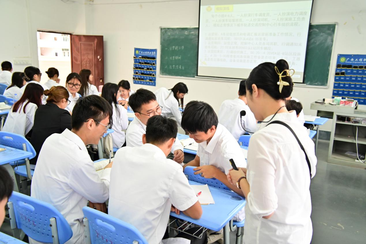 在活動過程中,盧桂玉老師講授《鐵路旅客運輸組織》課程,她向學生介紹鐵路旅客運輸業(yè)的基本概念、背景和發(fā)展歷程;講解鐵路旅客運輸在綜合交通體系中的地位和作用,教學環(huán)節(jié)環(huán)環(huán)相扣。徐琳老師的《城市軌道交通行車組織》課程,她主要講解正常情況下控制中心行車組織流程,讓學生知道控制中心行調工作、平時的行車用品和調度用語。通過模擬演練正常情況下控制中心行車組織一天的工作的方式,讓學生在練中學,加深理解控制中心的行車工作。