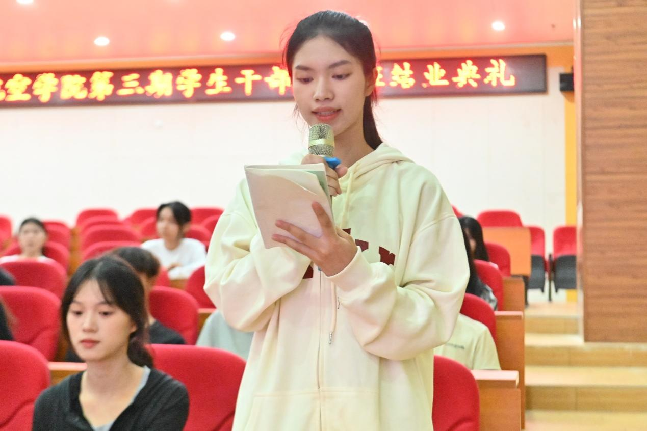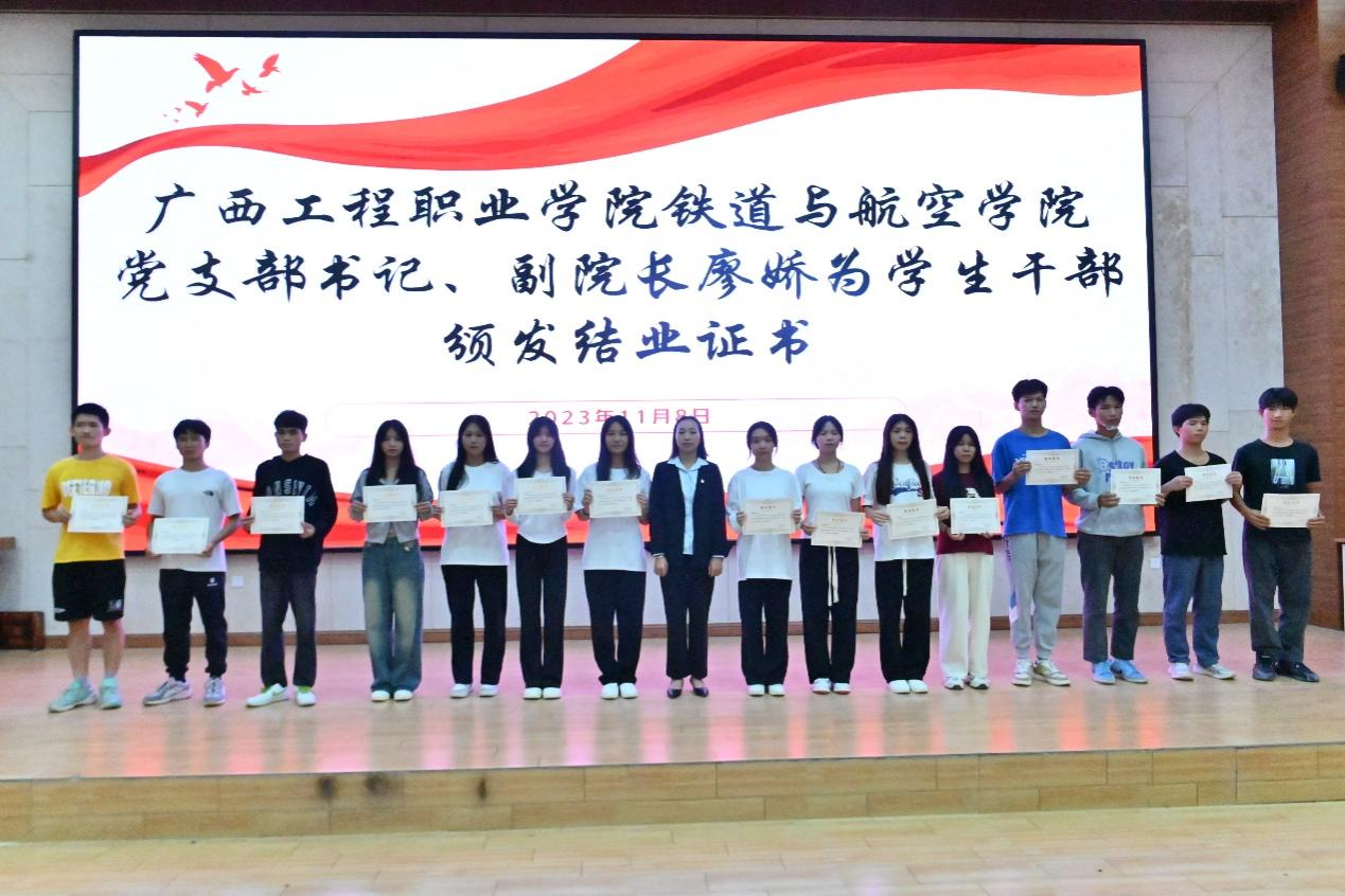 黨支部書記、副院長廖嬌為學(xué)生干部頒發(fā)結(jié)業(yè)證書