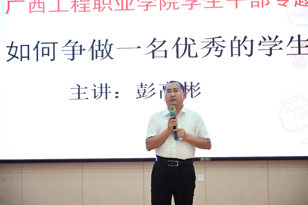 紀(jì)委書記、副校長彭高彬副教授作題為《如何做一名優(yōu)秀的學(xué)生干部》的專題培訓(xùn)