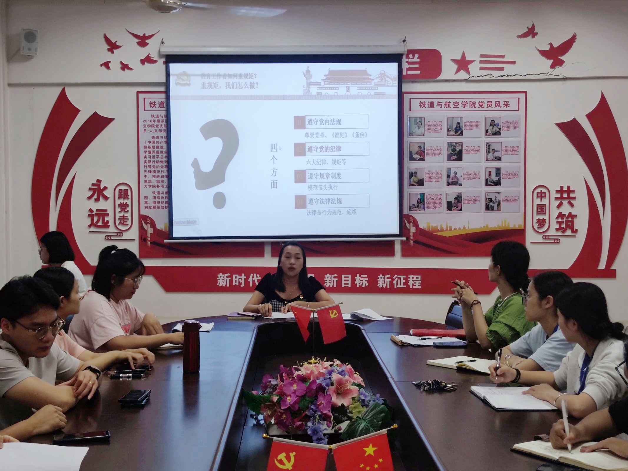 為了進一步推動黨風廉政建設的深入開展,提高黨員同志的紀律觀念和規(guī)矩意識,鐵道與航空學院黨支部于4月24日在學院黨員活動室開展了“守紀律、講規(guī)矩”主題教育專題黨課,本次黨課由鐵道與航空學院黨支部書記、副院長廖嬌主講,支部全體黨員參加學習。