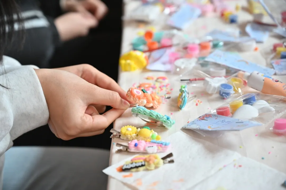 活動(dòng)過程中,同學(xué)們發(fā)揮自己的想象力與創(chuàng)造力,相互學(xué)習(xí)、相互交流,親手制作獨(dú)一無二的作品石膏娃娃、精致的發(fā)夾。