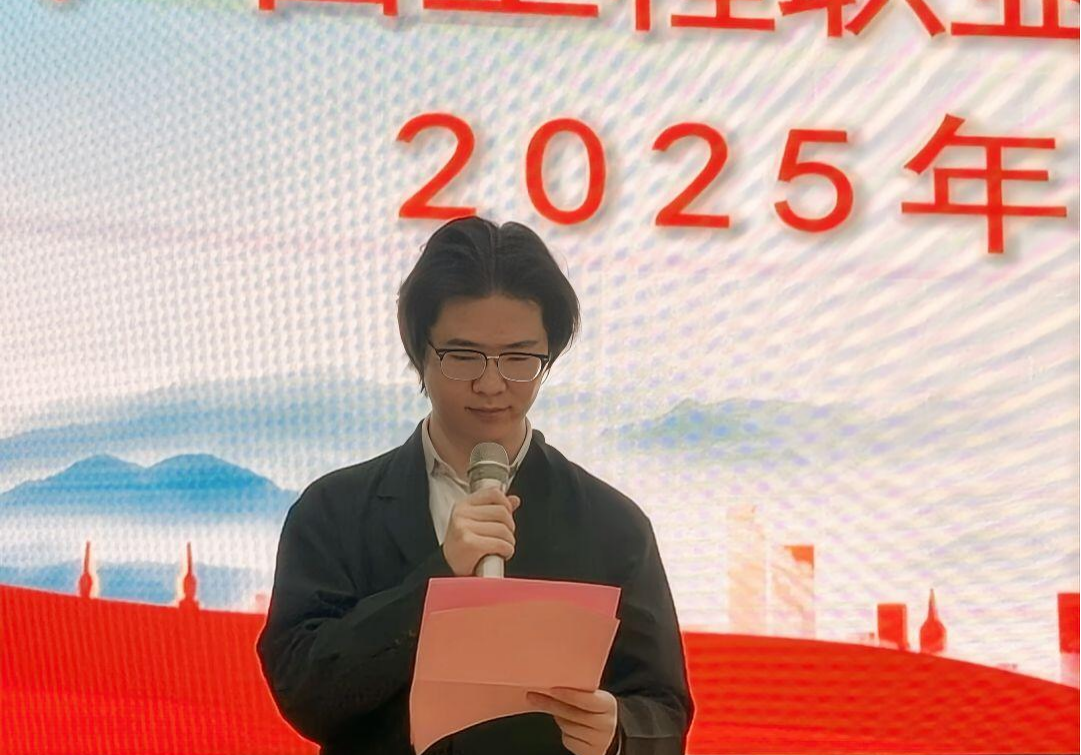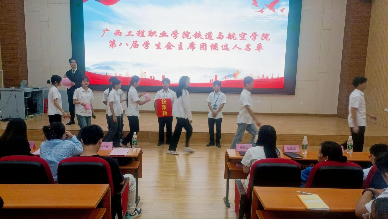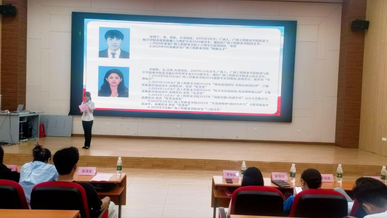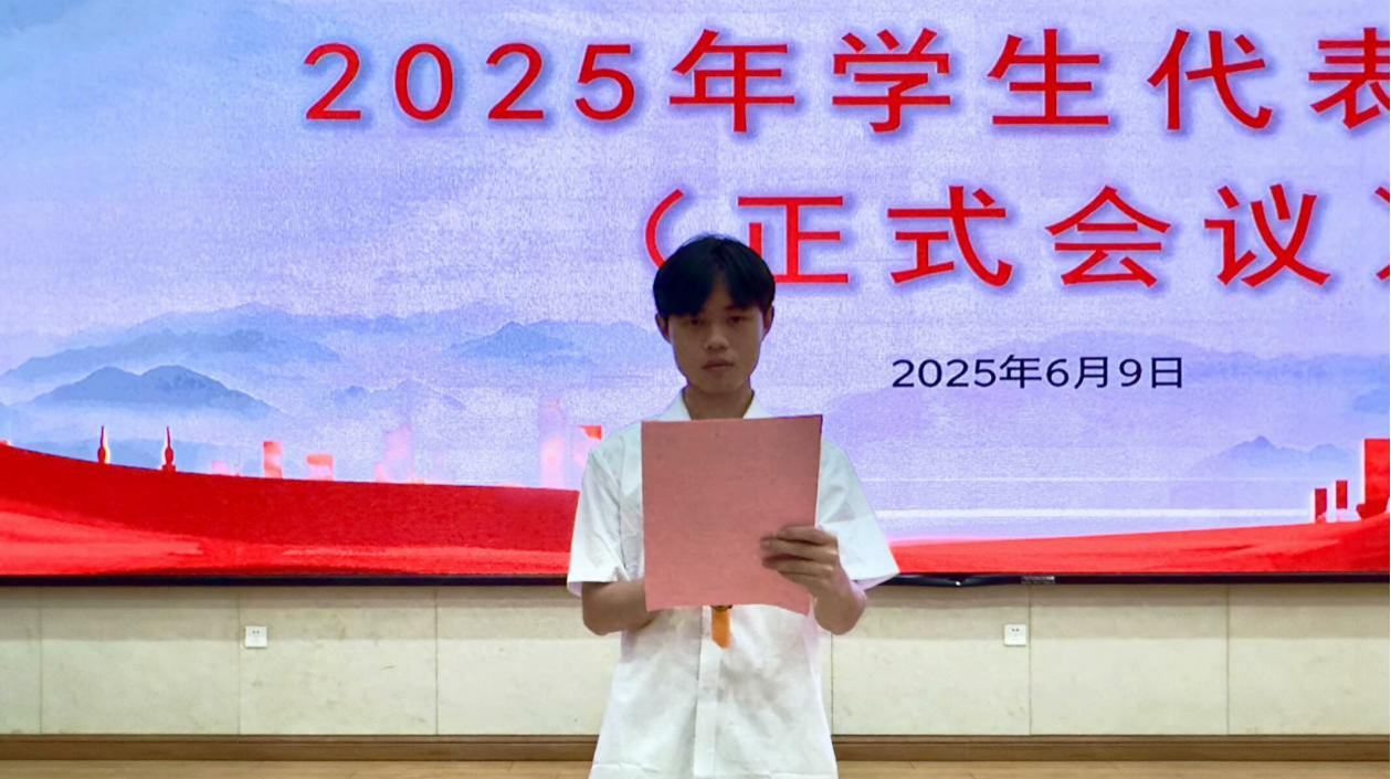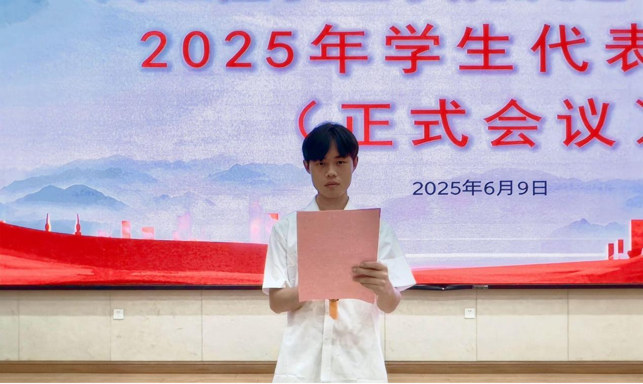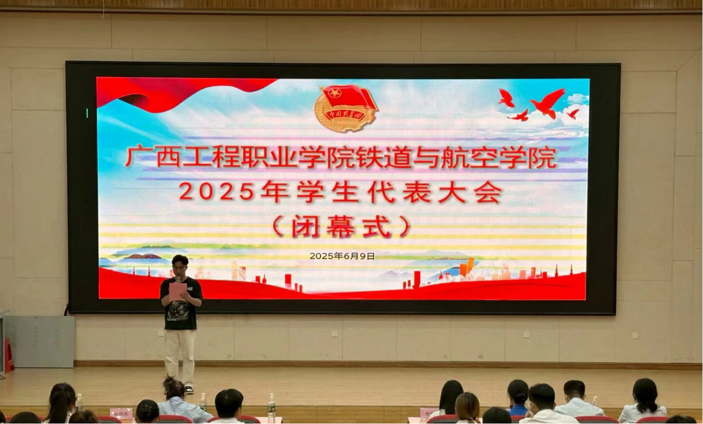 主持人章昊宣讀廣西工程職業(yè)學院鐵道與航空學院2025年學生代表大會總監(jiān)票人、監(jiān)票人、總計票人、計票人名單