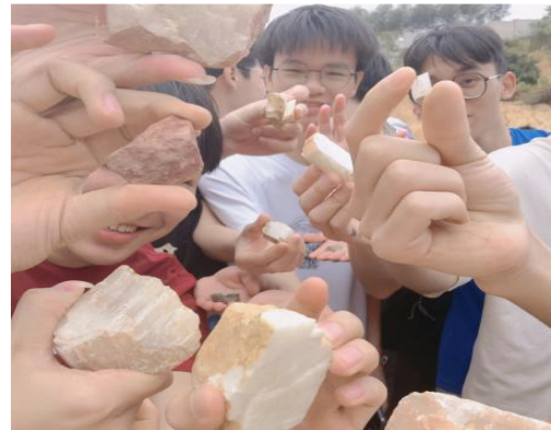 此次實訓(xùn)主要進行巖石類型的鑒別,根據(jù)野外巖石的產(chǎn)狀判斷巖石屬于的大類(巖漿巖、沉積巖、變質(zhì)巖),然后利用小刀、稀鹽酸等輔助工具從巖石的顏色、礦物成分、含量等具體確定巖石的具體名稱。