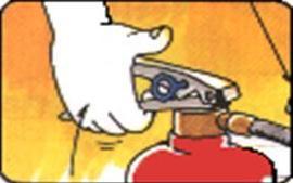第四步“噴”。往下按壓閥,對準(zhǔn)火焰根部噴射。