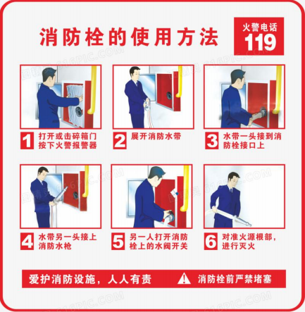 (1)打開消火栓門,按下內(nèi)部火警按鈕(按鈕是報(bào)警和啟動(dòng)消防泵的)。