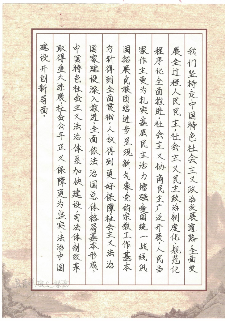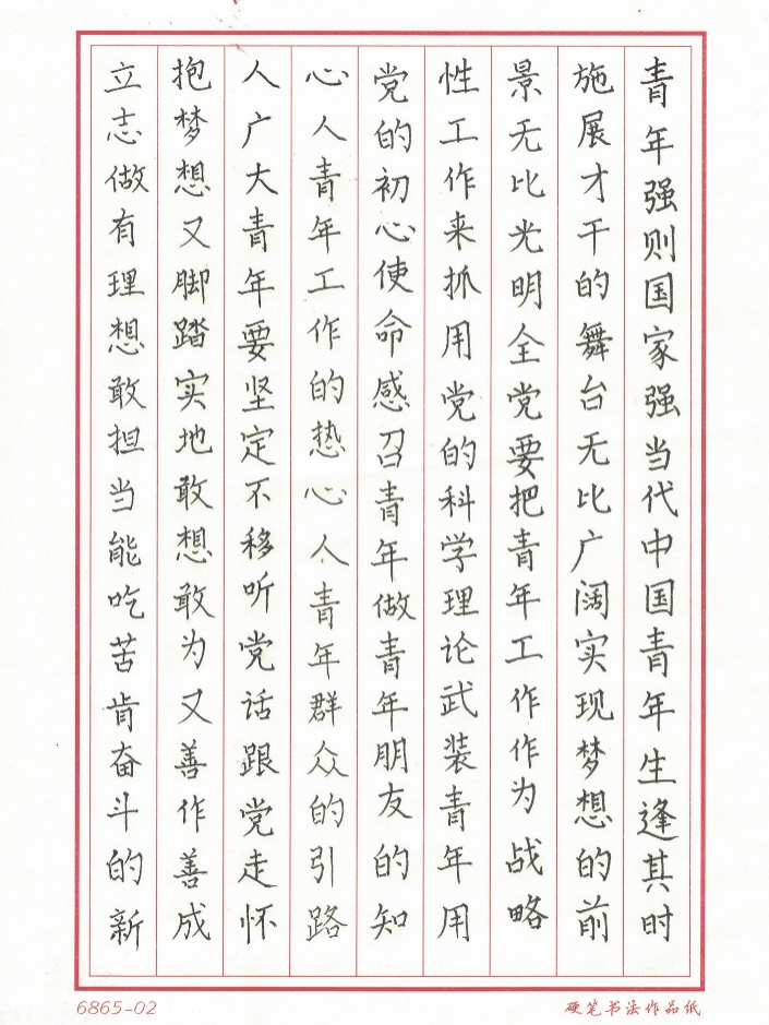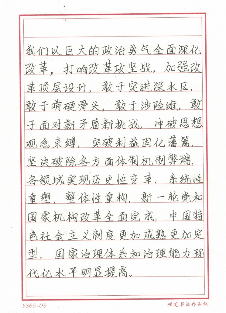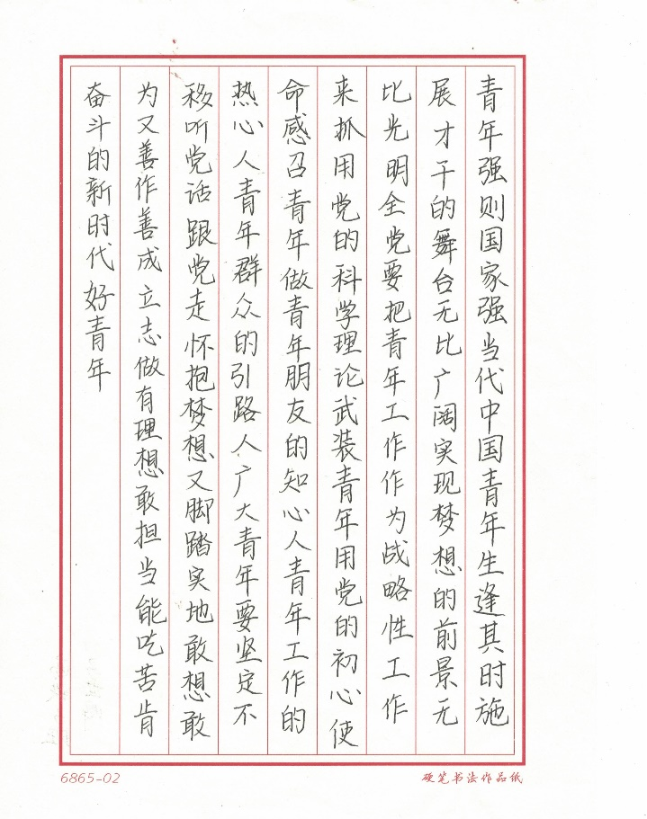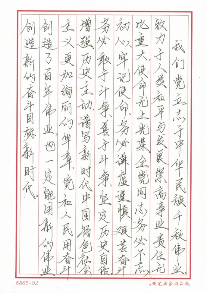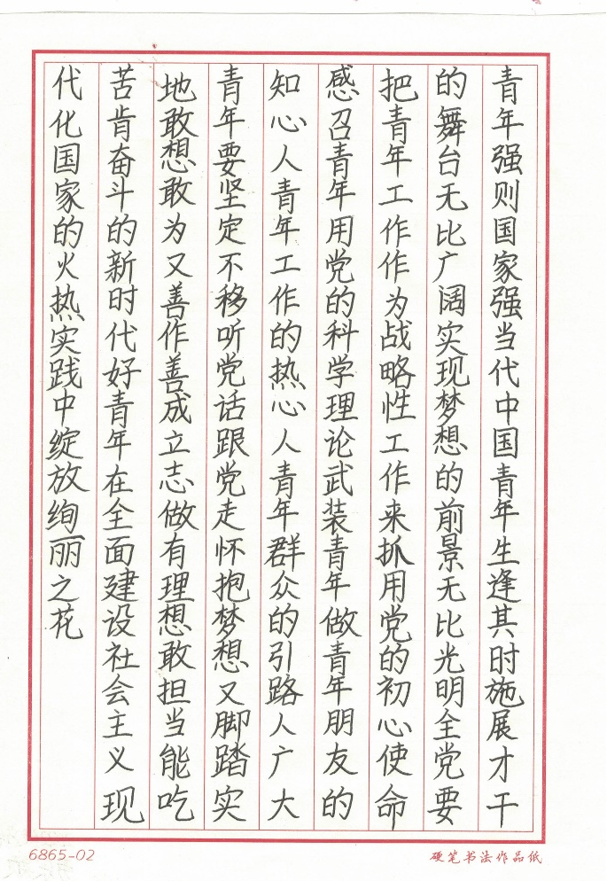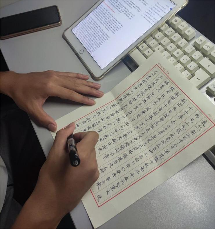 本次比賽作品主要包括硬筆、鋼筆和毛筆三種形式,賽前同學(xué)們用滿懷愛國(guó)愛黨的精神,以黨的二十大報(bào)告節(jié)選段落為書寫內(nèi)容,用心書寫每一筆,撰寫每一字。
