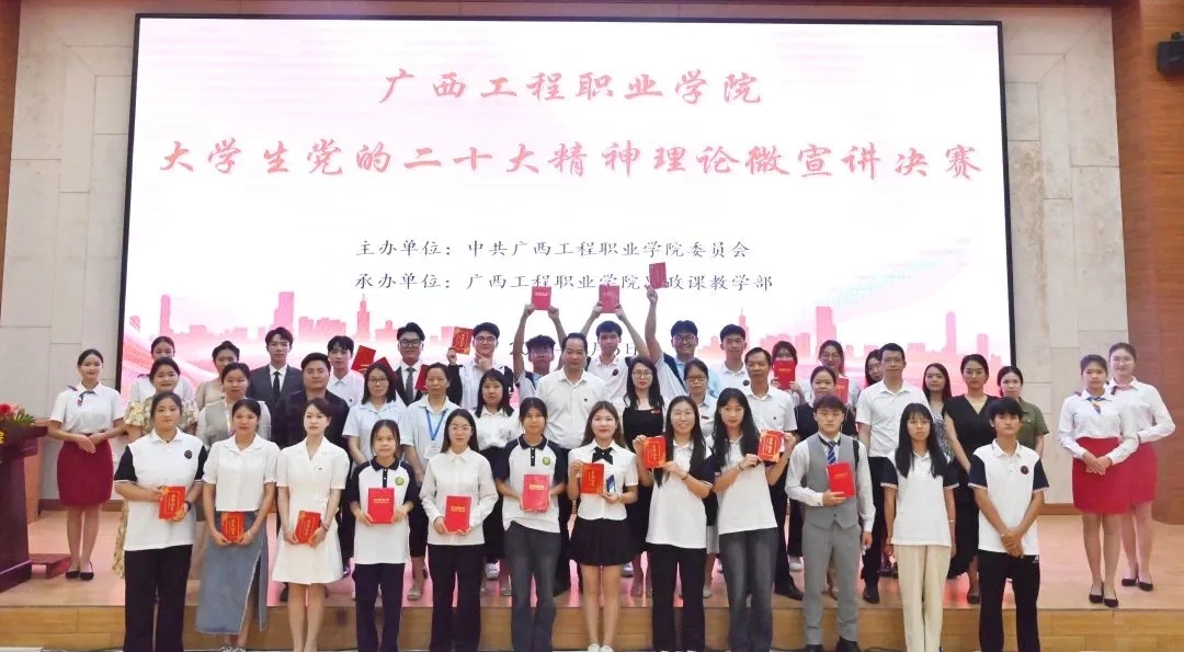 為引導(dǎo)我校大學(xué)生學(xué)思踐悟黨的二十大精神,推動黨的創(chuàng)新理論走進(jìn)青年、深入人心。5月6日晚,我校在圖文信息大樓一樓學(xué)術(shù)報告廳,舉行廣西工程職業(yè)學(xué)院2023年大學(xué)生黨的二十大精神理論微宣講比賽決賽。