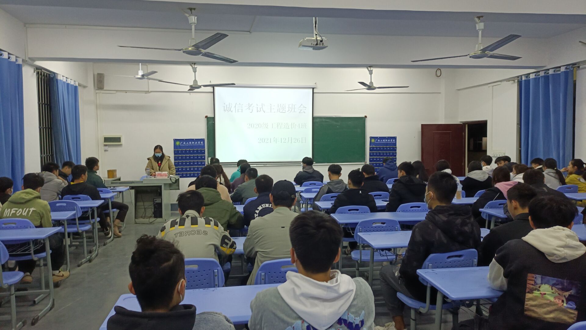 2020年12月26日,土木工程學(xué)院各專業(yè)學(xué)生在2號教學(xué)樓各班級教室開展了主題為“誠信考試”的主題班會(huì)。參加本次班會(huì)的成員為各班輔導(dǎo)員及土木工程學(xué)院全體同學(xué)。誠信考試活動(dòng)的開展,在推動(dòng)大學(xué)生深化誠信觀念、增強(qiáng)誠信意識、培養(yǎng)誠信品質(zhì)有著深遠(yuǎn)的意義。