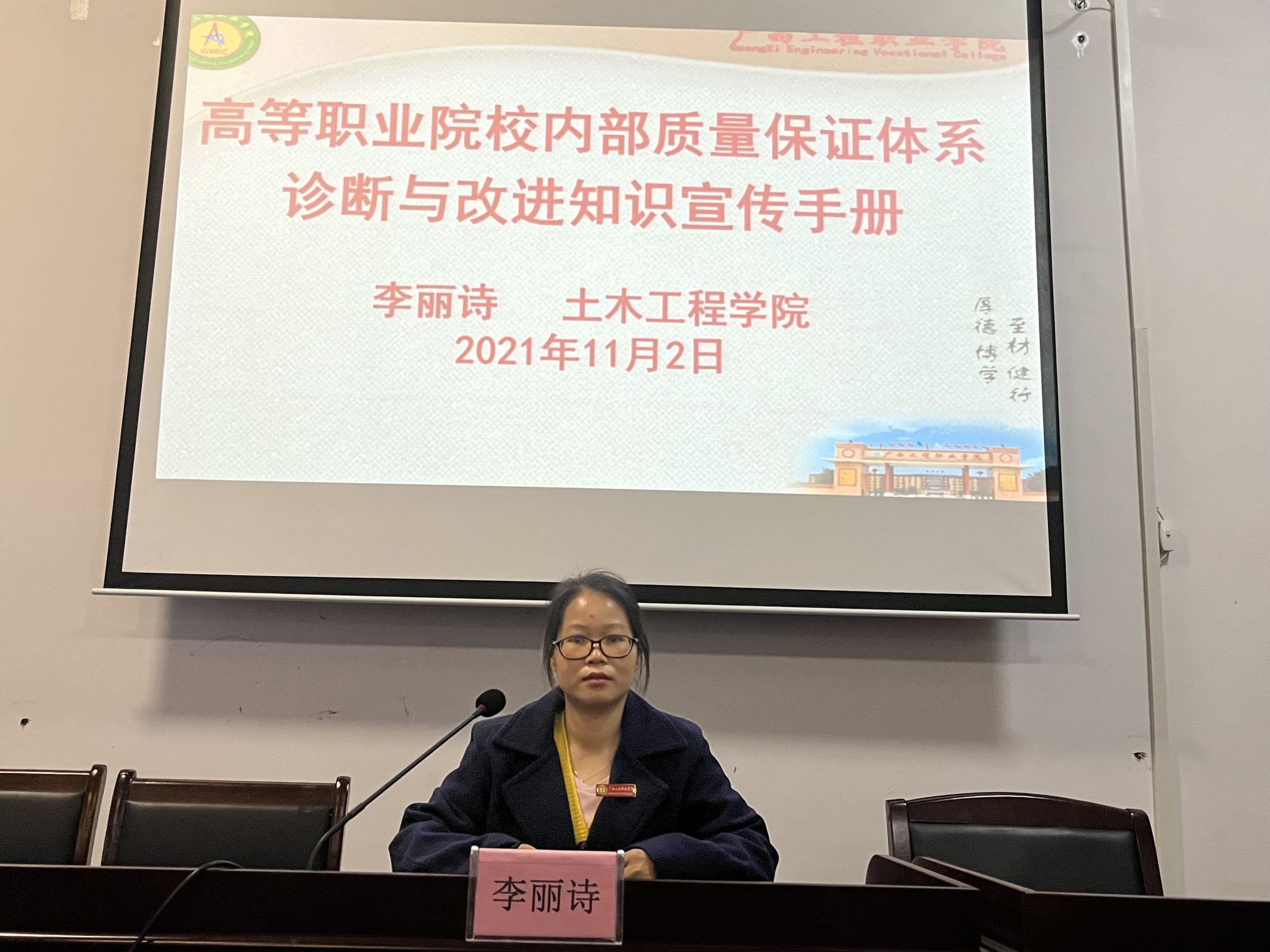 會議緊接著,由土木工程學(xué)院李麗詩副院長對2021年學(xué)校年檢工作動員及對本部門年檢工作進(jìn)行任務(wù)分解,給全體參會教職工作《高等職業(yè)學(xué)校內(nèi)部質(zhì)量保證體系診斷與改進(jìn)學(xué)習(xí)手冊》業(yè)務(wù)培訓(xùn)。