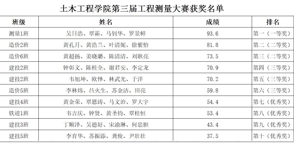 本次技能大賽主要考察選手們的觀測(cè)速度、觀測(cè)質(zhì)量、計(jì)算成果質(zhì)量三項(xiàng),同時(shí)也在考驗(yàn)各參賽小組間的協(xié)同配合和專業(yè)理論知識(shí)儲(chǔ)備,旨在提高參賽選手們的測(cè)量技術(shù),熟練并鞏固參賽選手們對(duì)測(cè)量技能的掌握,其比賽內(nèi)容四等水準(zhǔn)測(cè)量常作為小地區(qū)施工測(cè)量的高程基本控制,在土木工程測(cè)量中用途廣、實(shí)用性高,此次工程測(cè)量比賽有效提高了學(xué)生們的實(shí)踐動(dòng)手能力,促進(jìn)了學(xué)用結(jié)合,以實(shí)踐成果來(lái)體現(xiàn)學(xué)習(xí)成效。同時(shí)也鞏固、擴(kuò)大和加深了同學(xué)們從課堂上所學(xué)的理論知識(shí),增加了同學(xué)們對(duì)于工程測(cè)量學(xué)習(xí)的興趣,讓同學(xué)們系統(tǒng)地掌握了測(cè)量?jī)x器操作、實(shí)測(cè)、計(jì)算等基本技能,使實(shí)際工作能力得到鍛煉,并為學(xué)生們將來(lái)踏入社會(huì)能夠順利工作,打下了堅(jiān)實(shí)的基礎(chǔ)。