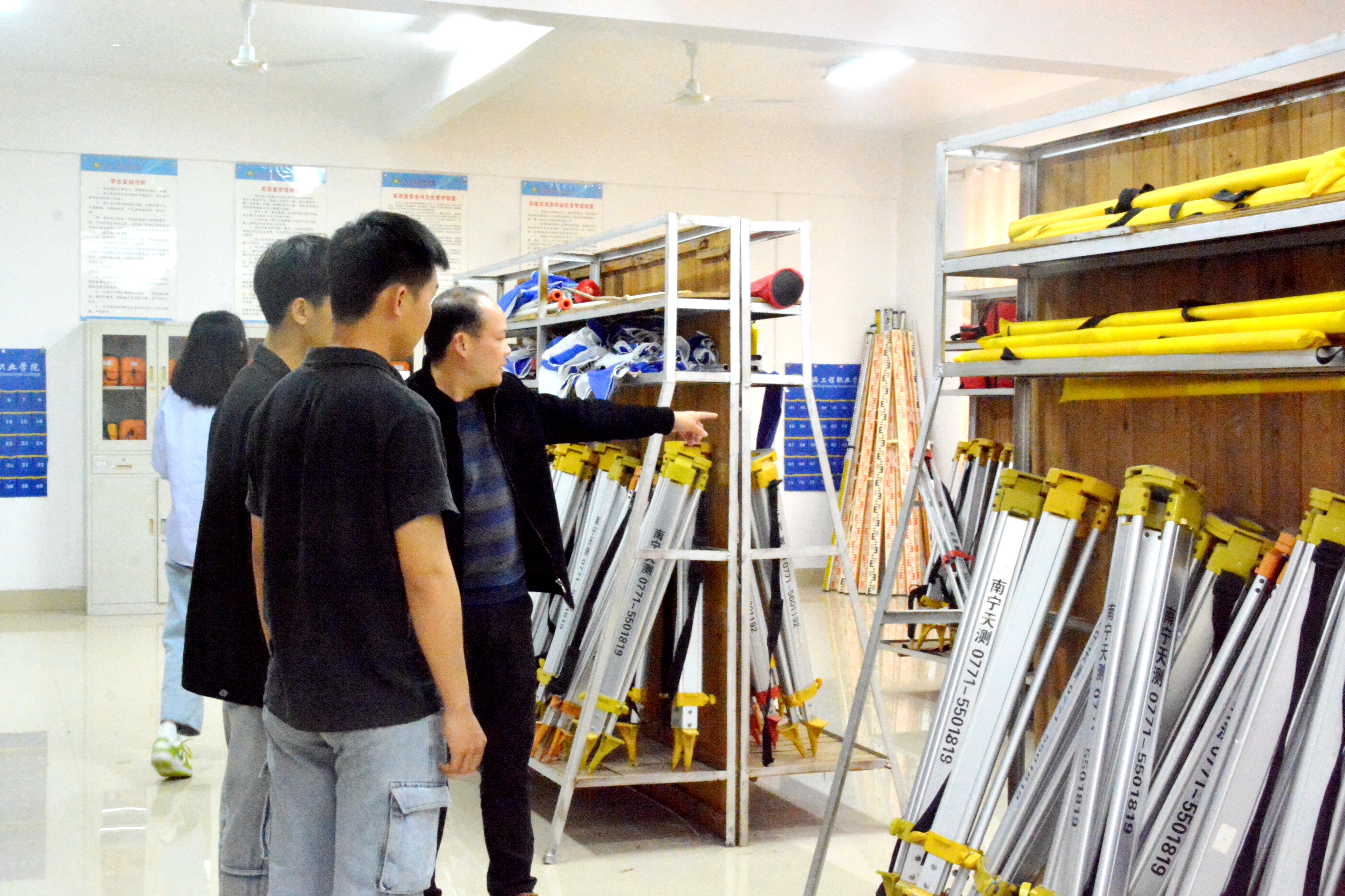 學(xué)生在阮老師帶領(lǐng)下整理測繪儀器圖