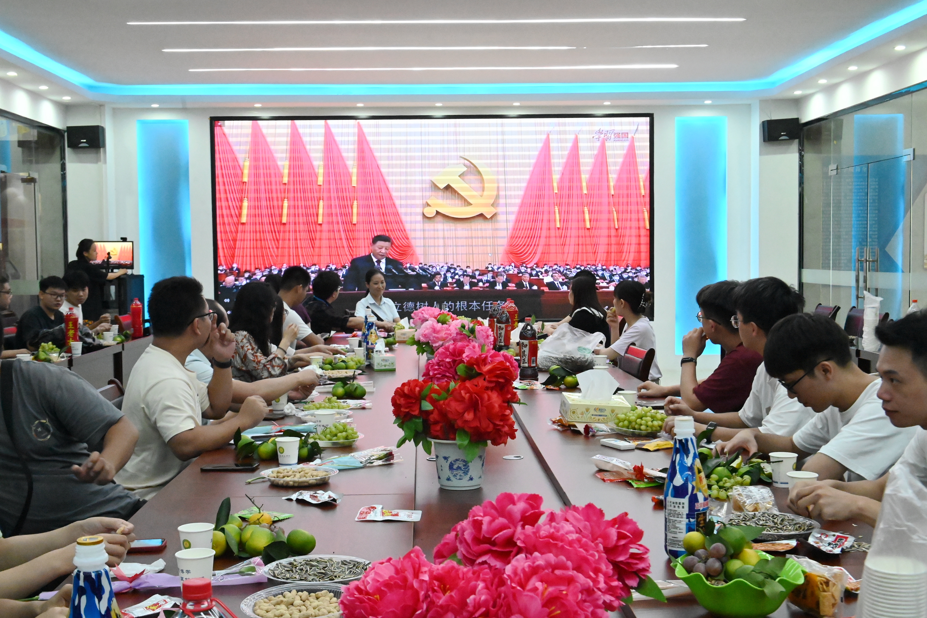 隨后,副院長楊竟傳達(dá)了上級黨組織關(guān)于開展學(xué)習(xí)習(xí)近平總書記關(guān)于教育的重要論述和開展第39個教師節(jié)慶?;顒拥奈募瘢M織全體教師集中觀看了專題片《習(xí)近平的教師情》,專題片圍繞習(xí)近平總書記在黨的十八大以來致信教師盛贊奉獻(xiàn)精神、走訪學(xué)校慰問師生,言行間盡顯對師道的尊重和對教師的關(guān)心,專題片中記錄了近十年總書記關(guān)于教育的重要論述和講話、回信精神,通過觀看專題片,全體黨員教師感受到總書記對國家教育事業(yè)和教師隊伍建設(shè)的高度重視,領(lǐng)悟到總書記對廣大人民教師提出的殷切期望和明確要求。