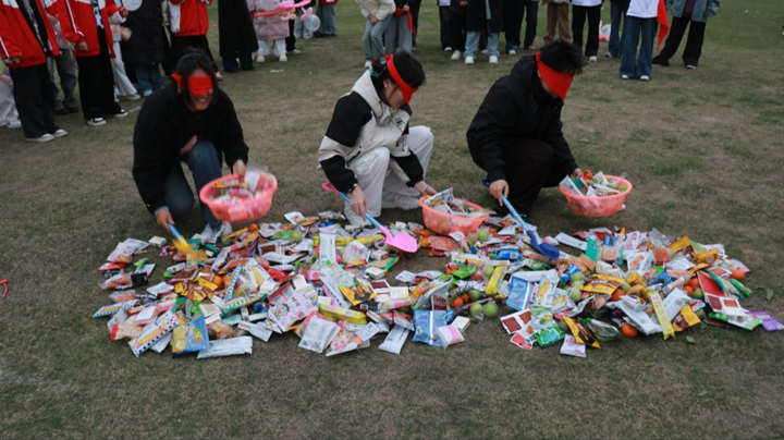 零食很“鏟”環(huán)節(jié),同學(xué)們用紅領(lǐng)巾蒙住眼睛原地轉(zhuǎn)5圈后在30秒時(shí)間內(nèi)不限次數(shù)用鏟子把零食挑到盤(pán)里。同學(xué)們積極參與其中,游戲環(huán)節(jié)促進(jìn)了同學(xué)們相互交流,彼此留下了許多歡聲笑語(yǔ)的回憶。