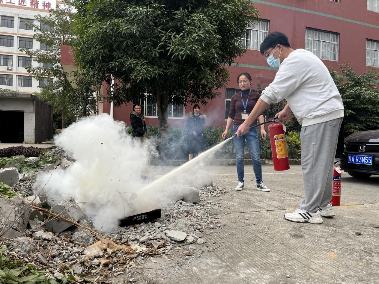 陳勇同學(xué)進(jìn)行滅火器使用實(shí)戰(zhàn)演練