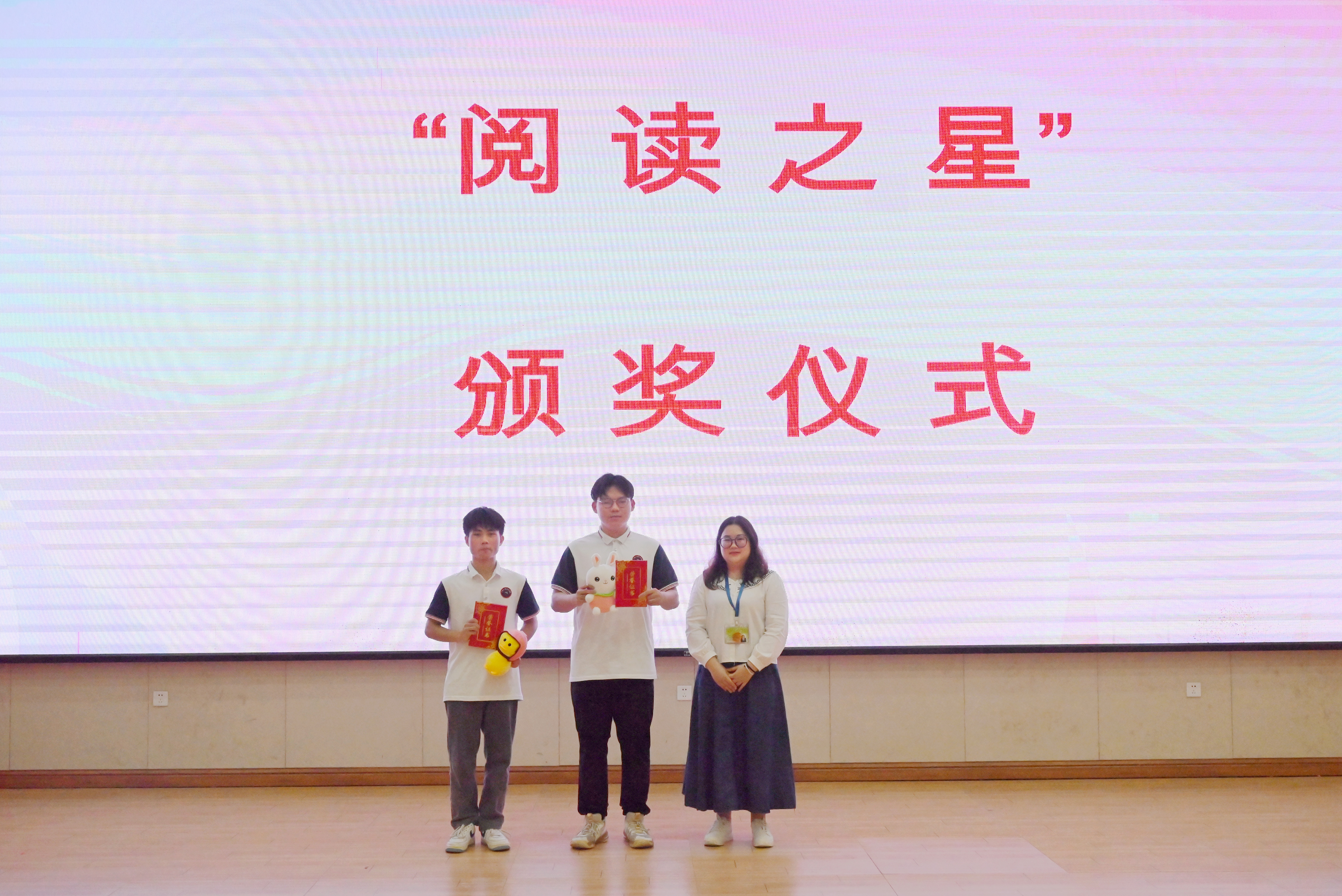 閆雪蓮老師為獲得二等獎的王源源、冼劍強同學(xué)頒獎