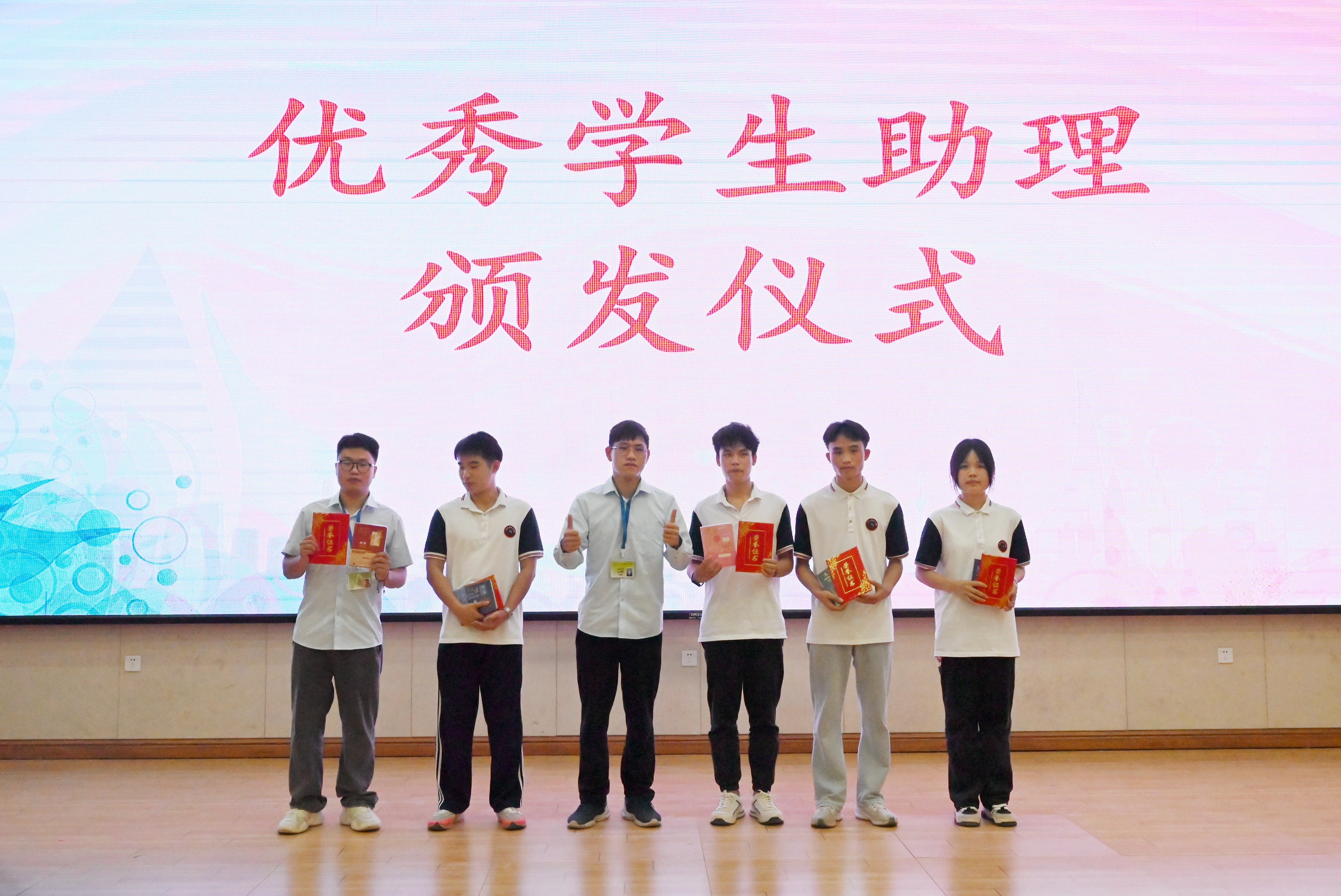 鄒聲華科長為圖書館優(yōu)秀學(xué)生助理農(nóng)山、陳春穎、陳海銘、譚濤、周桂芳頒發(fā)榮譽證書