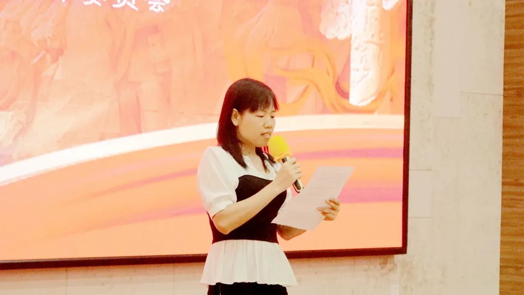 藝術(shù)設(shè)計學(xué)院黨支部書記覃鳳姣宣讀比賽評分標準