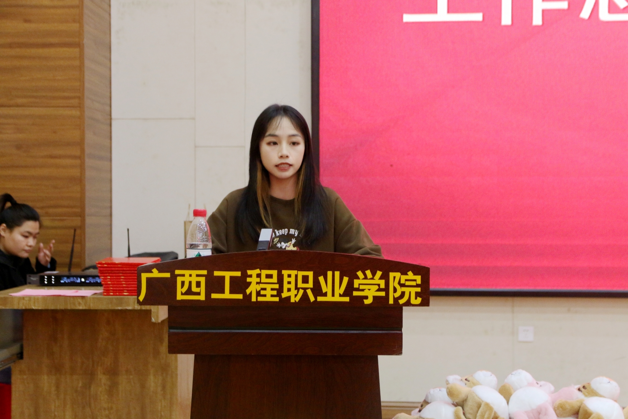 龍金妹科長對2021年度學(xué)生工作進(jìn)行總結(jié)