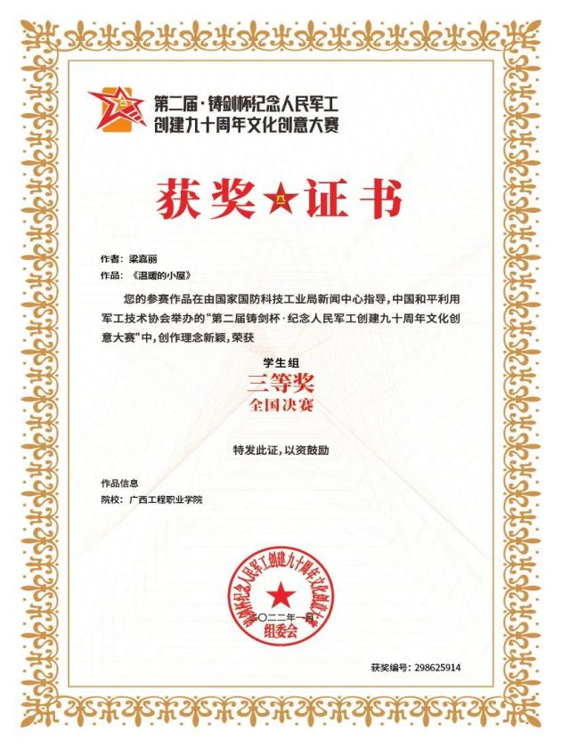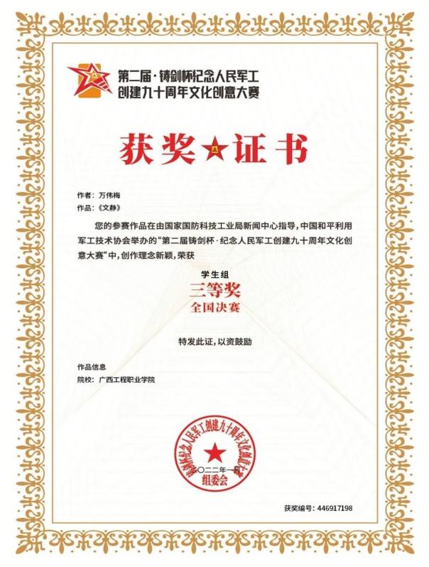 第二屆鑄劍杯紀(jì)念人民軍功創(chuàng)建九十周年文化創(chuàng)意大賽全國決賽(中國和平利用軍工技術(shù)協(xié)會舉辦)