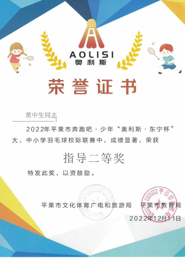 2022年平果市奔跑吧•少年“奧利斯杯•東寧杯”大、中小學(xué)羽毛球校際聯(lián)賽(平果市文化體育廣電和旅游局、平果市教育局主辦)