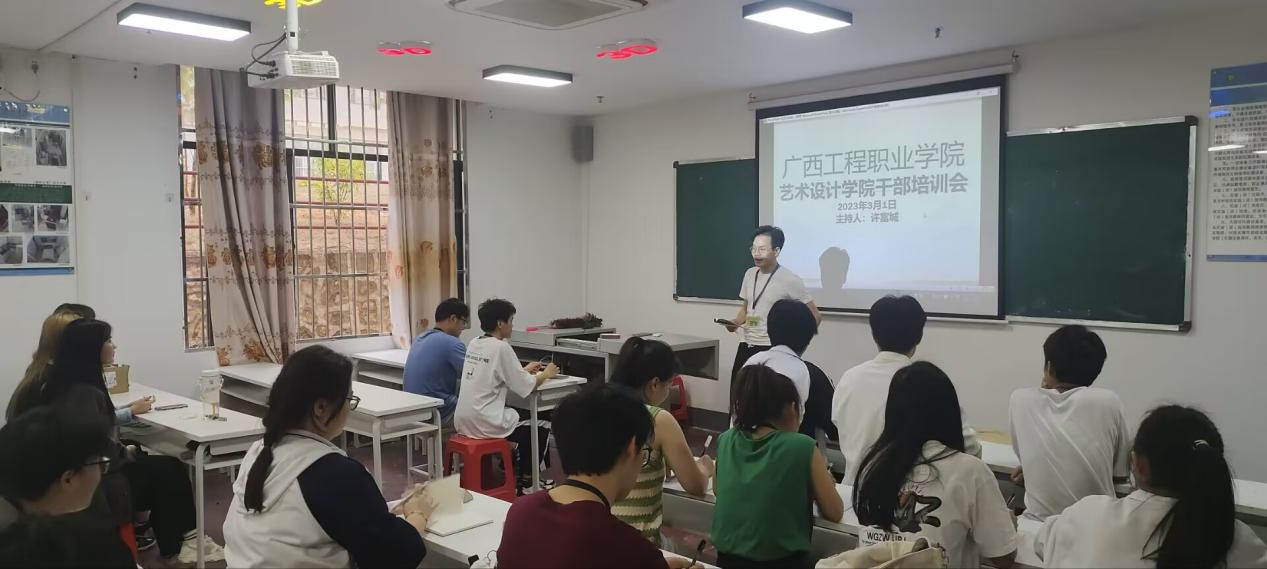 為進一步提高學(xué)生干部的素質(zhì)和能力,有效的開展學(xué)生會工作,培養(yǎng)一支工作能力強、思想素質(zhì)高的學(xué)生干部隊伍,保證學(xué)生會工作的積極性,充分發(fā)揮學(xué)生的主體作用。藝術(shù)設(shè)計學(xué)院于2023年3月17日下午六點,在設(shè)計樓一樓召開了干部培訓(xùn)會。此次會議由藝術(shù)設(shè)計學(xué)院學(xué)生科科長、分團委書記許富城主講,藝術(shù)設(shè)計學(xué)院學(xué)生會干部參與此次會議。