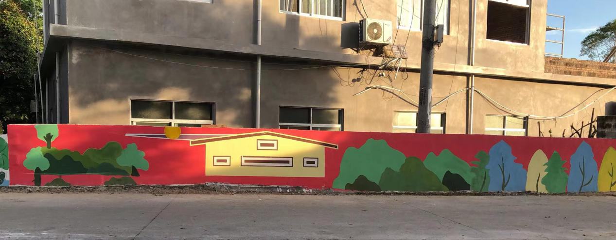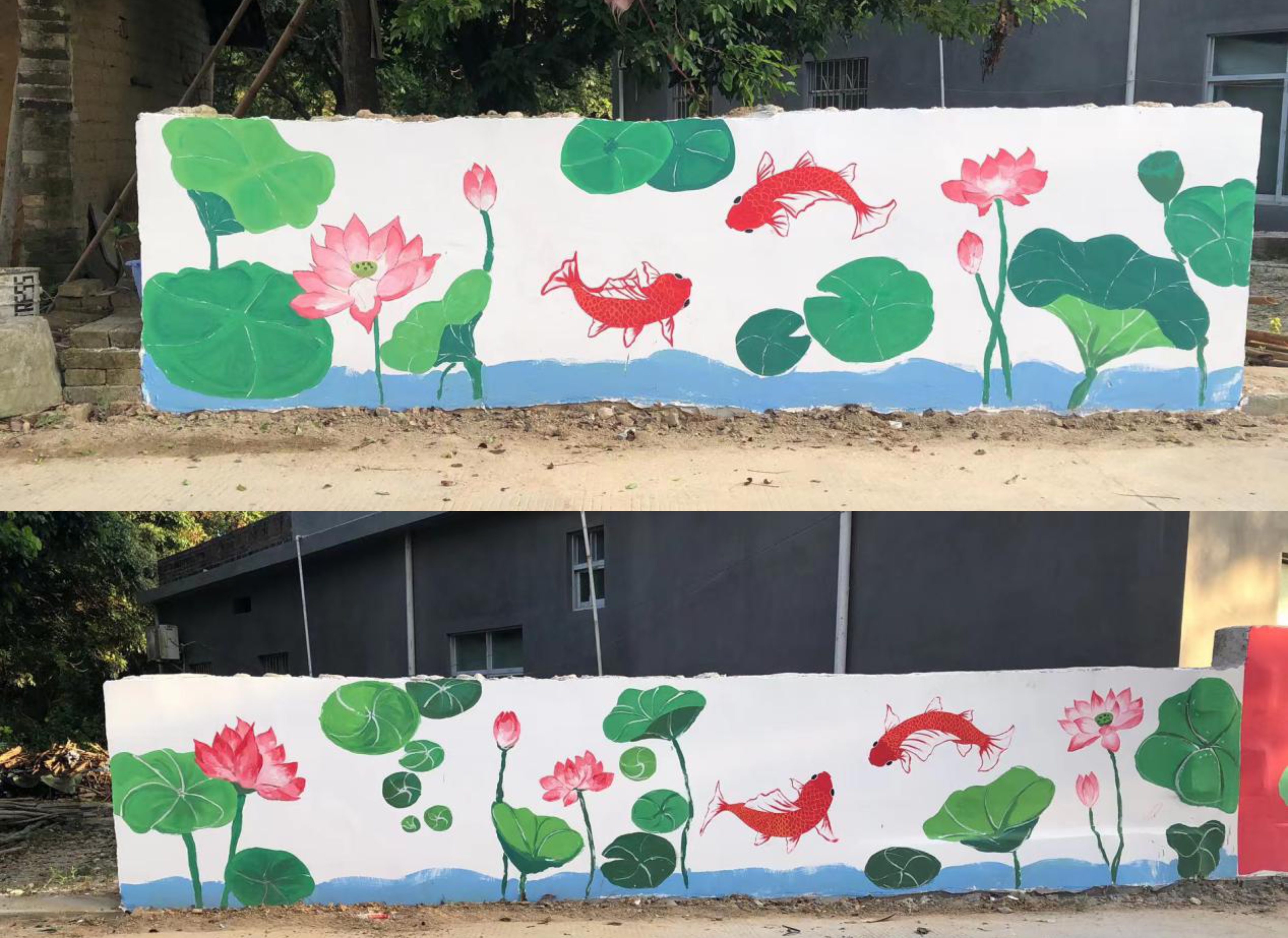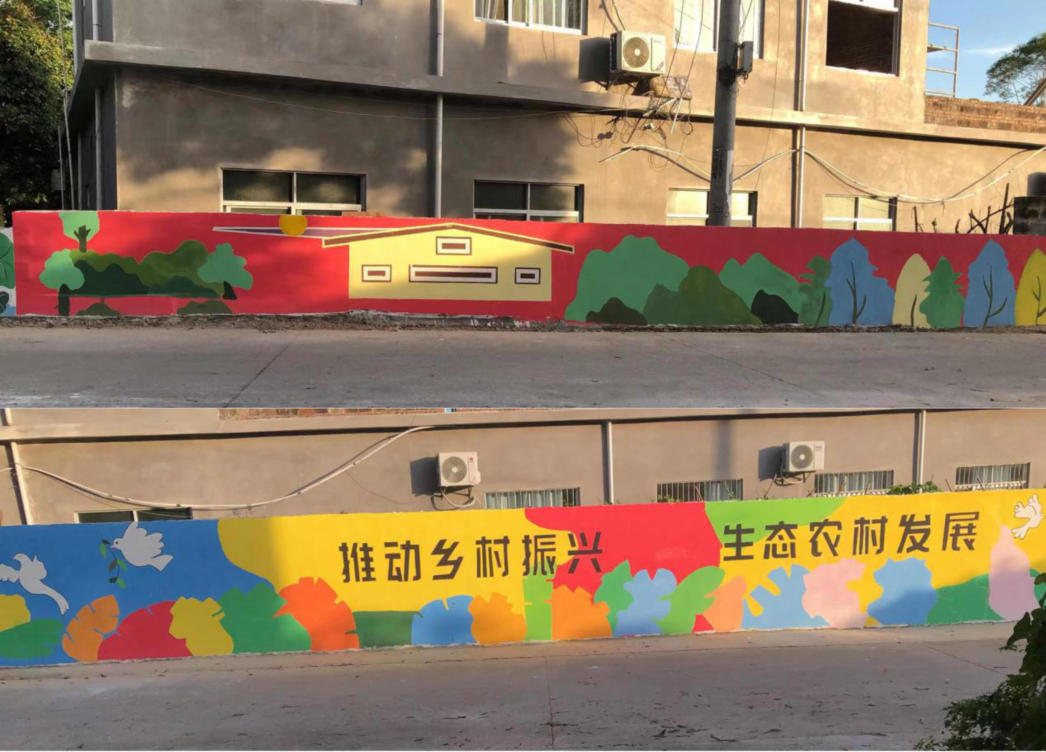 為進(jìn)一步學(xué)習(xí)貫徹黨的二十大精神,積極響應(yīng)黨的號召,助力鄉(xiāng)村振興建設(shè),打造“美麗庭院”,為鄉(xiāng)村振興添色彩,提升鄉(xiāng)村內(nèi)涵,7月21日至23日,藝術(shù)設(shè)計(jì)學(xué)院黨支部、百色工程職業(yè)技術(shù)學(xué)校黨支部范玉翠、郁長松、趙志輝、蘇媚、陸閑等5名教師黨員赴玉林市陸川縣橫山鎮(zhèn)旺坡村開展公益“彩色文化墻繪,繪就鄉(xiāng)村振興”主題黨日活動,用藝術(shù)服務(wù)鄉(xiāng)村振興、用畫筆描繪美麗鄉(xiāng)村。黨員教師共學(xué)黨史,共繪創(chuàng)意墻繪,助力鄉(xiāng)村振興建設(shè),展示“黨建引領(lǐng)、產(chǎn)業(yè)興旺、生態(tài)宜居、生活富裕、鄉(xiāng)風(fēng)文明、治理有效”的鄉(xiāng)村振興新風(fēng)貌。