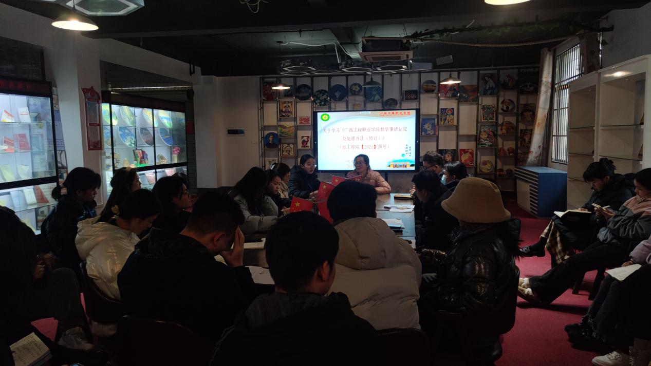 會(huì)上,藝術(shù)設(shè)計(jì)學(xué)院院長(zhǎng)覃鳳姣對(duì)近期學(xué)生管理工作做出了要求,她要求全體輔導(dǎo)員根據(jù)學(xué)校相關(guān)會(huì)議精神做好開(kāi)學(xué)準(zhǔn)備工作,使學(xué)生順利、有序返校;對(duì)黨支部工作提出了要求,要求全體黨員教師要端正工作態(tài)度,按時(shí)按質(zhì)按量地完成工作。藝術(shù)設(shè)計(jì)學(xué)院辦公室主任趙金甜對(duì)教學(xué)工作及學(xué)院的行政工作進(jìn)行了補(bǔ)充,要求各位教師做好新學(xué)期備課工作,調(diào)整心態(tài),盡快投入到工作當(dāng)中。最后,學(xué)院全體教師共同學(xué)習(xí)了《廣西工程職業(yè)學(xué)院課堂教學(xué)管理規(guī)定》、《廣西工程職業(yè)學(xué)院教學(xué)事故認(rèn)定及處理方法》,藝術(shù)設(shè)計(jì)學(xué)院院長(zhǎng)覃鳳姣要求學(xué)院全體教師嚴(yán)格按照文件要求完成教學(xué)工作,做好課堂教學(xué)管理,避免出現(xiàn)教學(xué)事故。
