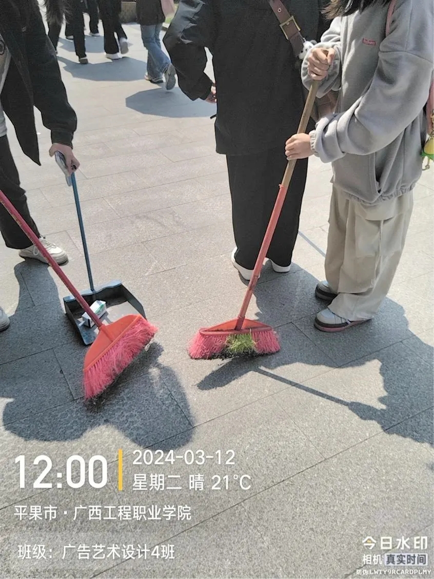2023級廣告藝術(shù)設(shè)計2班、2023級廣告藝術(shù)設(shè)計4班的同學(xué)們開展衛(wèi)生清潔活動