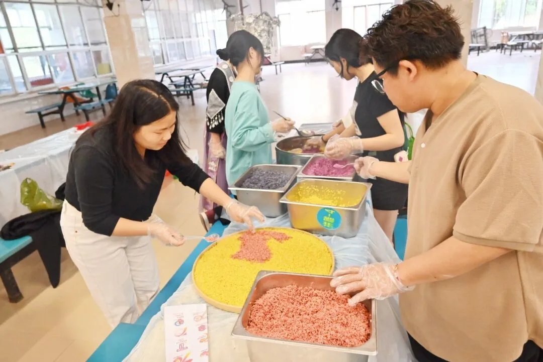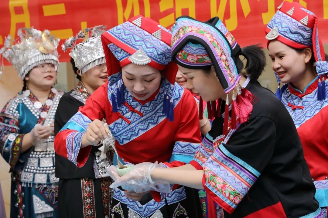 本次“廣西三月三”系列活動以“潮起三月三,團結(jié)你我行”為主題,開展有“扎染制作”“廣西特色美食(糯米飯、艾葉糍粑、油茶)制作”“‘廣西三月三’微黨課”“蓮鼓越歌行舞蹈”“跳竹竿舞”“山歌對唱”等6項獨具魅力的活動。